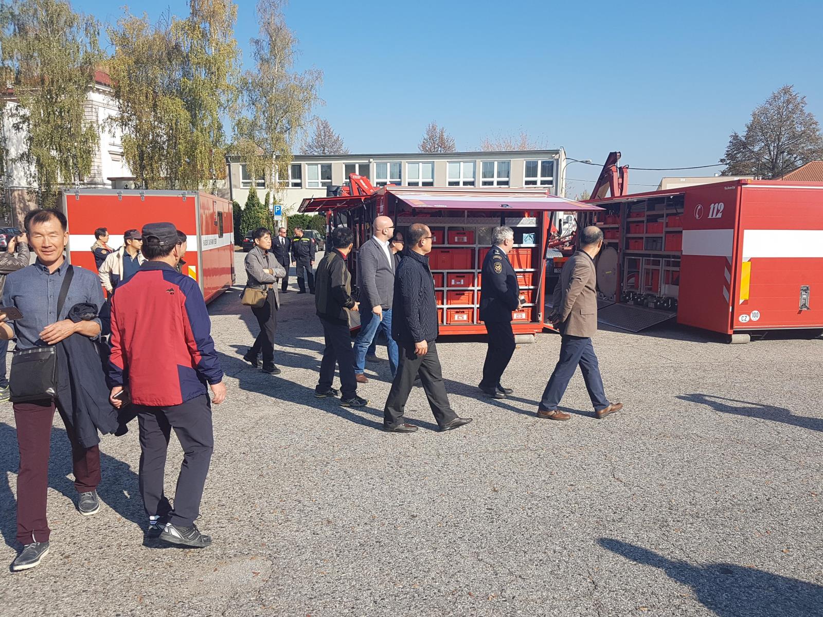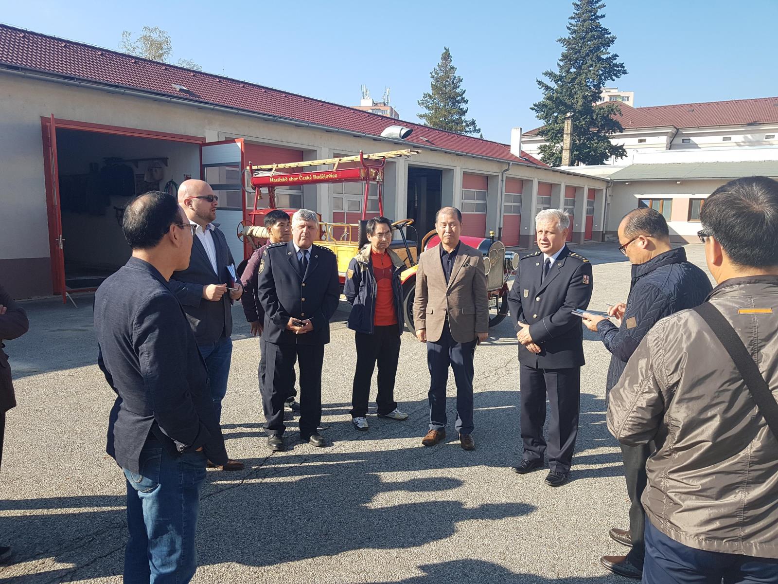 Vzácnou návštěvu přijalo vedení HZS Jihočeského kraje v čele s ředitelem plk. Lubomírem Burešem v úterý 16. října 2018. Krajské ředitelství a stanici v Českých Budějovicích navštívilo 15 hasičů z jihokorejské provincie Chungcheongnam-do.