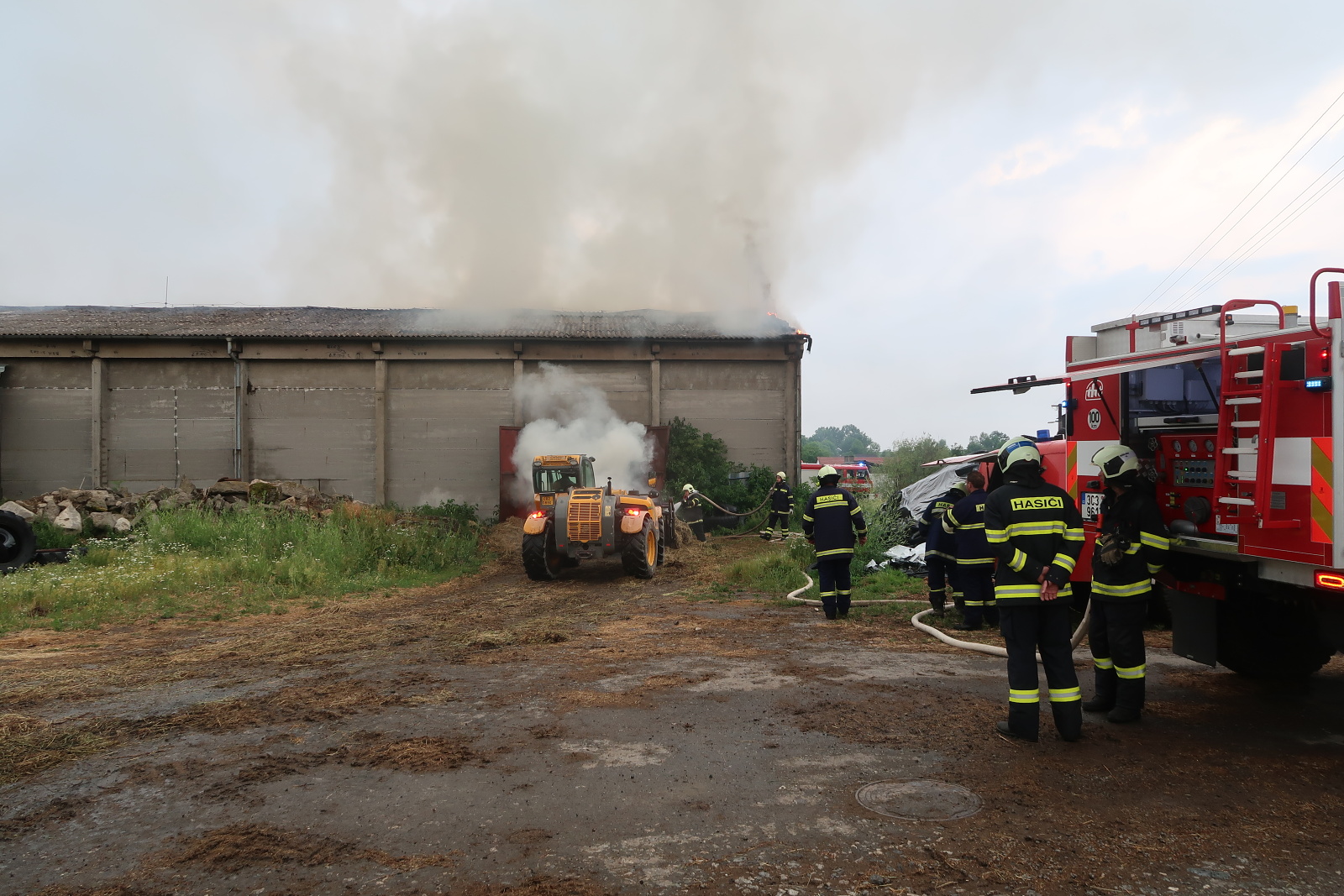 Požár zasáhnul uskladněné seno (přibližně 600 tun) v plném rozsahu, velitel si vyžádal z uvedených jednotek další cisterny. V blízké Vlásenici hasiči zřídili čerpací stanoviště, na požářiště pak vodu dovážejí kyvadlově cisternami.