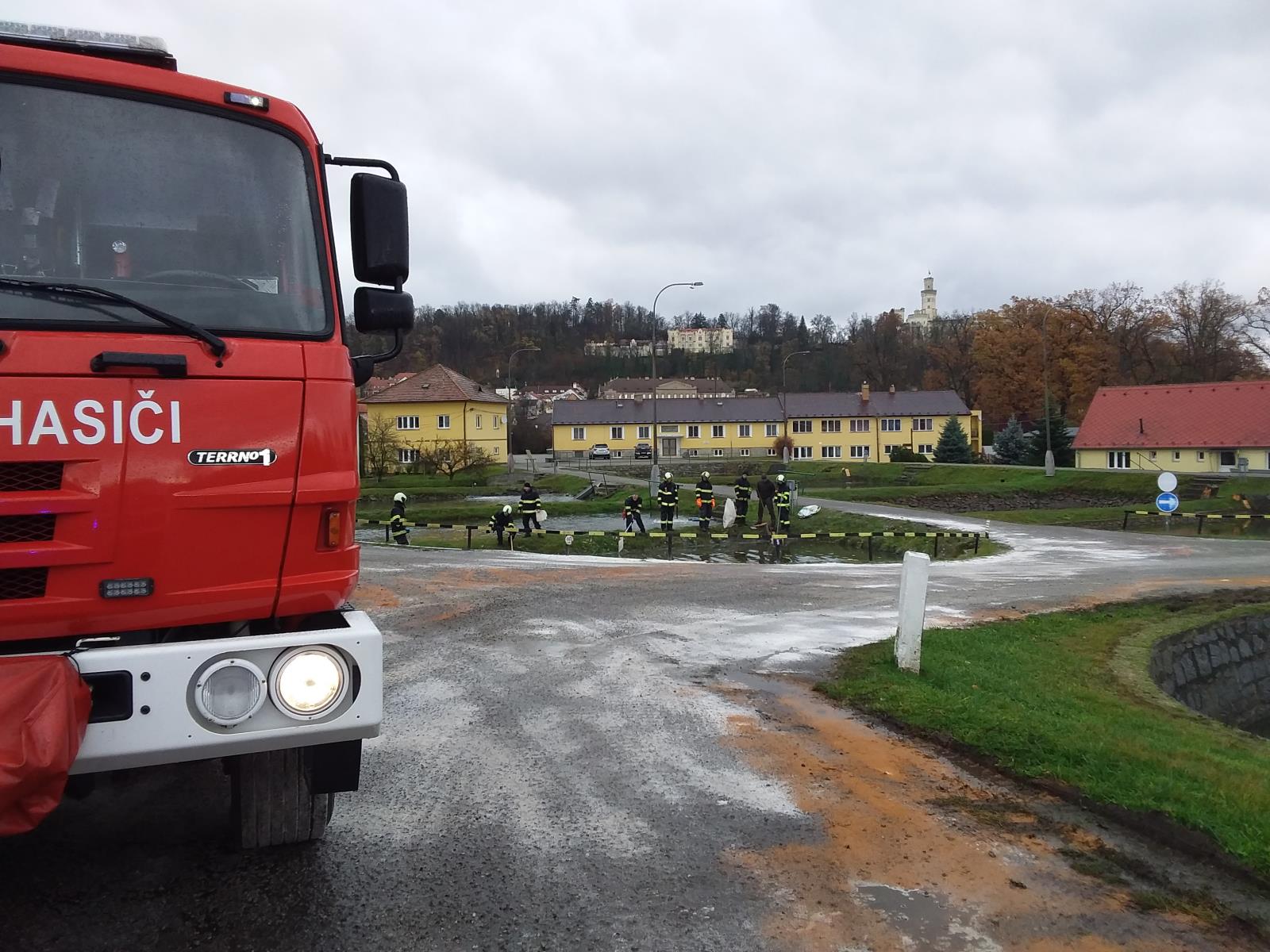 Profesionální hasiči ze stanic České Budějovice a Suché Vrbné spolupracovali v Hluboké nad Vltavou, kde v areálu sádek došlo k znečištění naftou nejen silnice, ale především vody v jedné z nádrží.