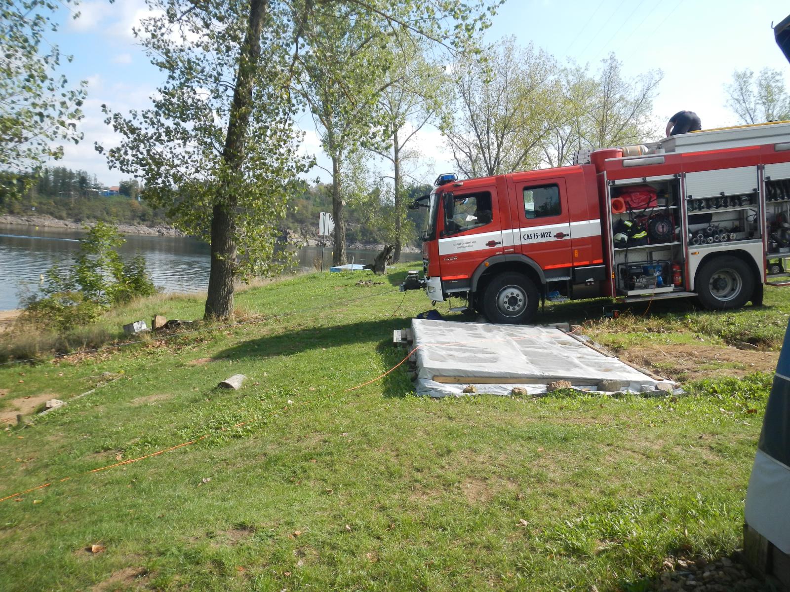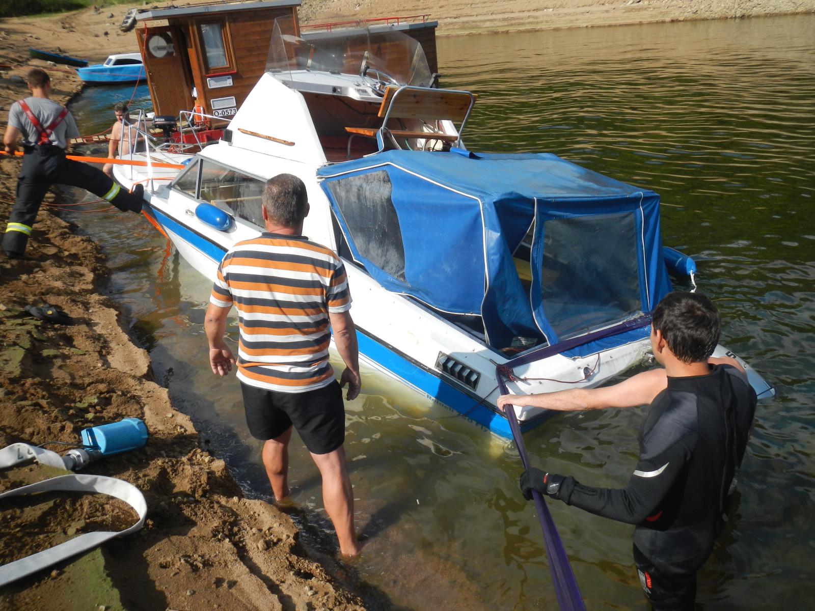 Milevští hasiči do kempu Velký Vír vyjeli v 10:27 hodin. Průzkum na místě ukázal, že se jedná o kajutový motorový člun, který se převrátil kajutou pod hladinu.