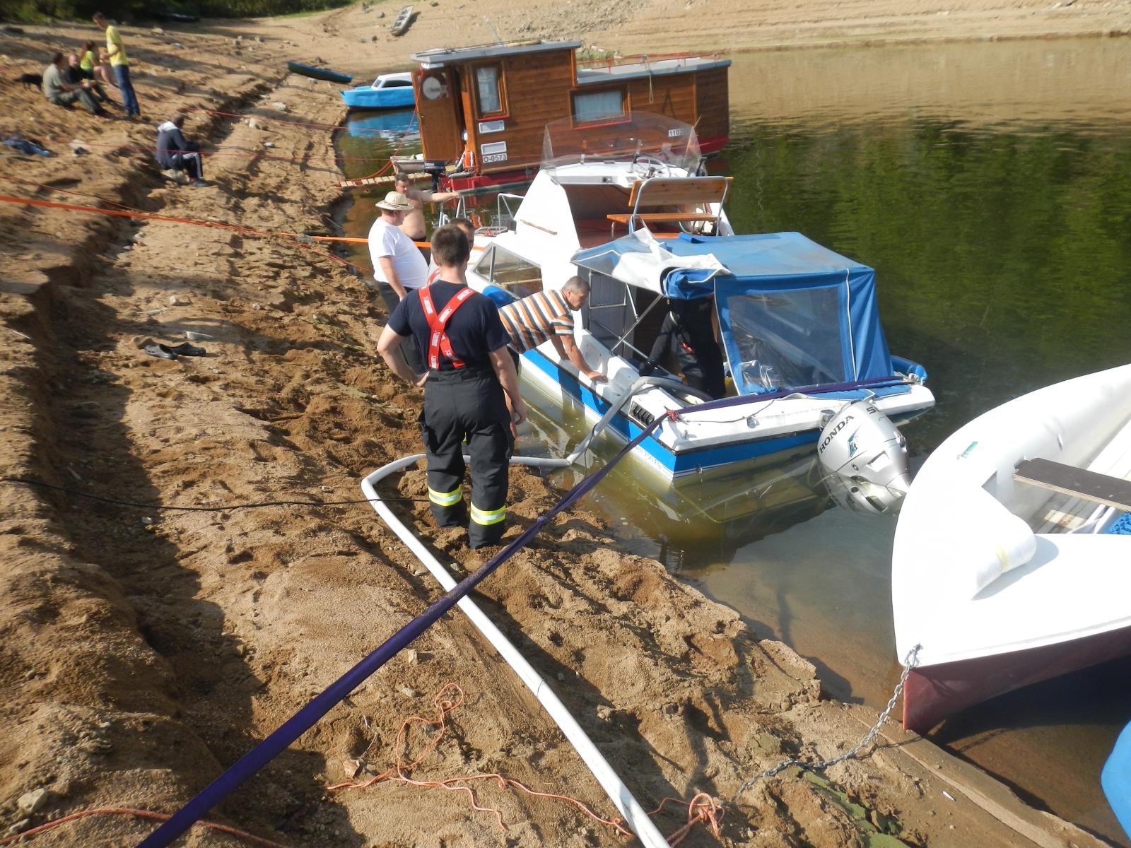 Loď byla přivázána ke břehu a nevytékaly z ní žádné provozní kapaliny. Hasiči použili naviják z cisterny a člun přetočili. Poté nasadili kalové a plovoucí čerpadlo a odčerpali z něj vodu. V trupu lodi pak nalezli díru, kterou provizorně zatmelili.