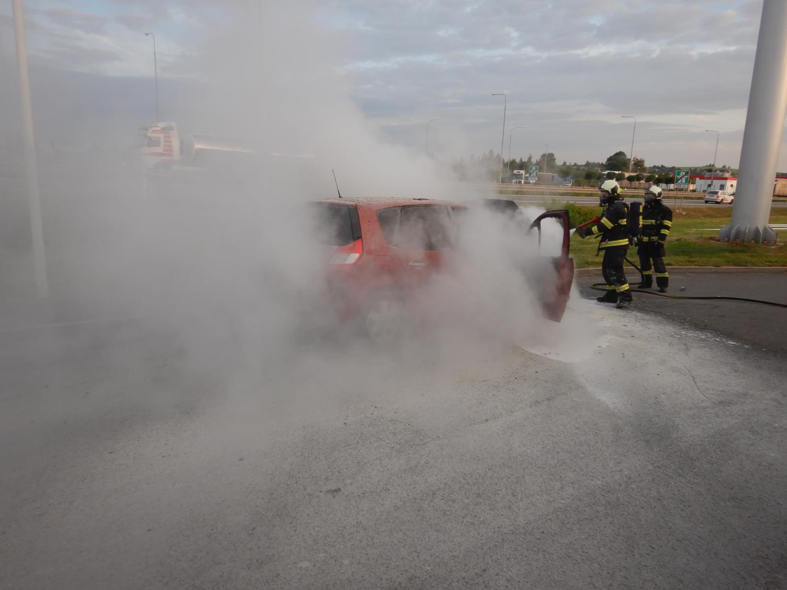 Požár ještě před příjezdem hasičů hasila obsluha čerpací stanice. Na to, aby požár dostali pod kontrolu, použila šest přenosných...