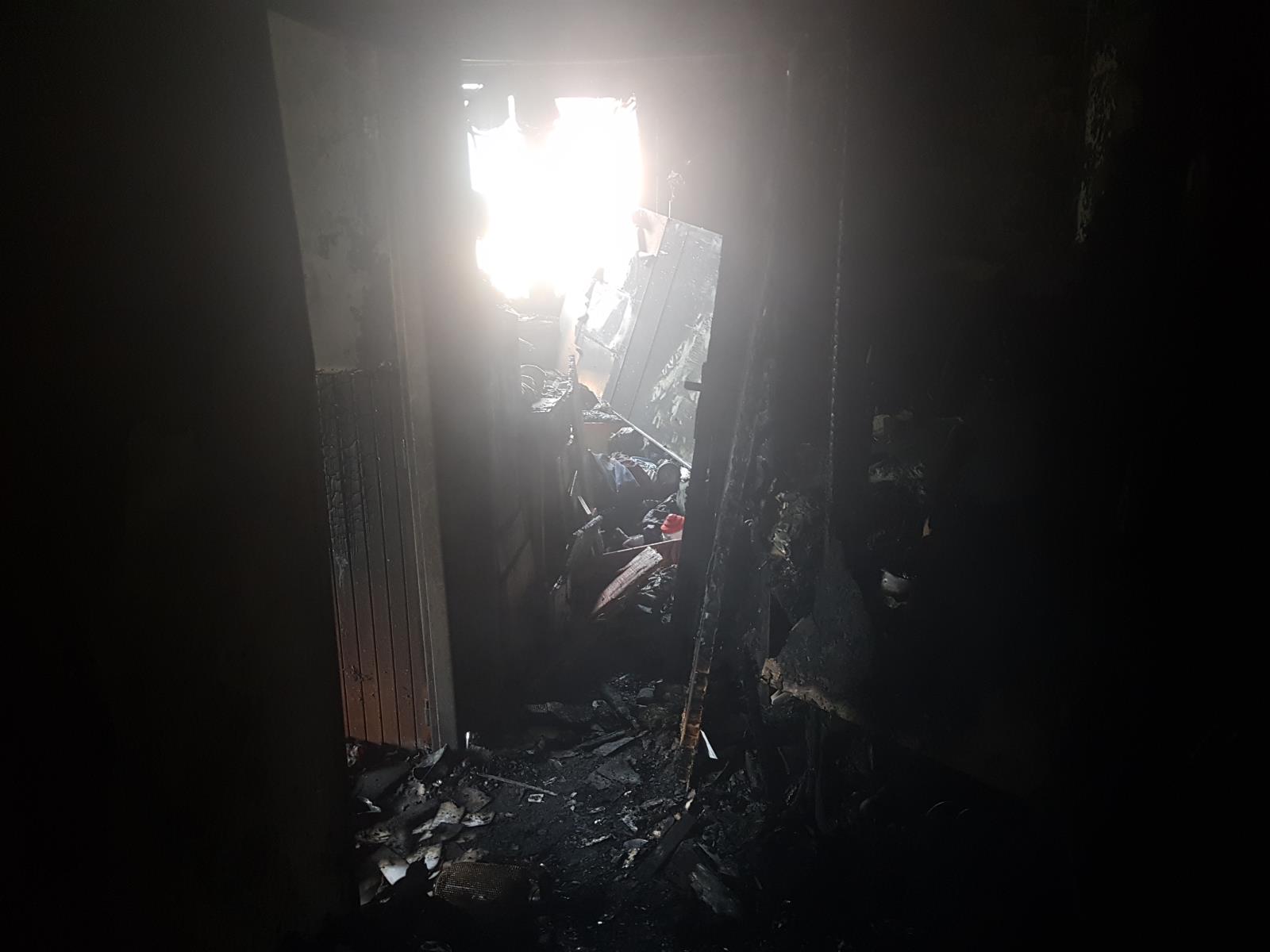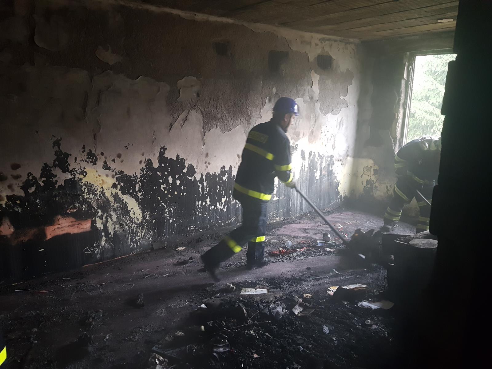 byl zasažen kompletně. Zasahujícím hasičům se podařilo požár dostat rychle pod kontrolu. Do bytu se dostali jak vnitřkem domu, tak i vnějškem po žebříku. V 10:06 hodin velitel zásahu hlásil lokalizaci požáru