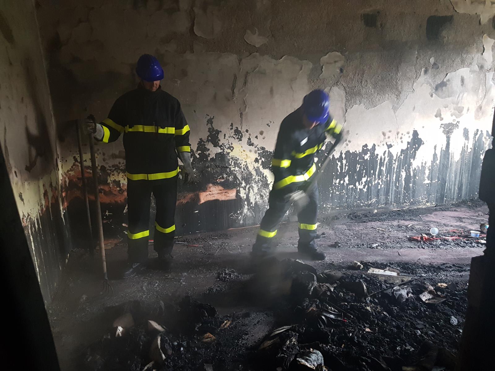 Po lokalizaci požáru jednotky musely z bytu okny vyházet velké množství věcí, které byly v bytě doslova naskladněny. Ve velkoobjemových kontejnerech je pak hasiči prolévali vodou a dohašovali. Závěrečný průzkum bytu velitel zásahu provedl termokamerou. Úplná likvidace požáru nastala v 15:33 hodin.