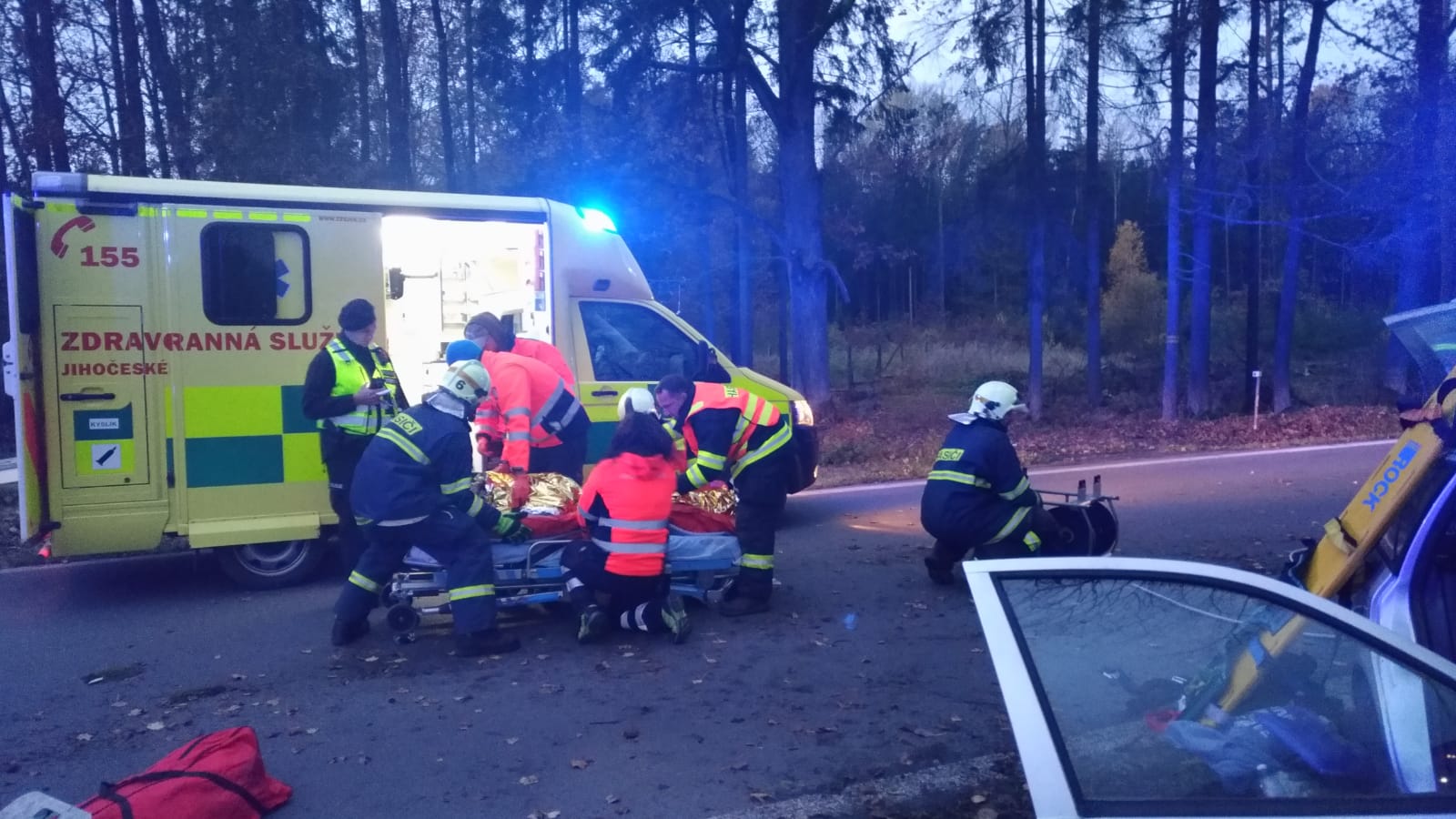 Informaci o nehodě hasiči přijali na operační středisko šest minut po 16. hodině. K nehodě byli vysláni profesionální hasiči ze stanice Týn nad Vltavou, svolána byla také jednotka SDH obce Bechyně. Průzkum na místě nehody potvrdil původní ohlášení. Zasahující hasiči ihned zahájili vyprošťování. Museli hydraulickým vyprošťovacím zařízením rozstříhat celý pravý bok vozu, aby zraněnou osobu vyprostili a předali zdravotníkům ZZS. Zároveň vůz, který skončil mimo vozovku bokem na stromě, zajistili proti vzniku požáru a provedli kontrolu úniku provozních kapalin. Nehodu šeří Policie ČR.