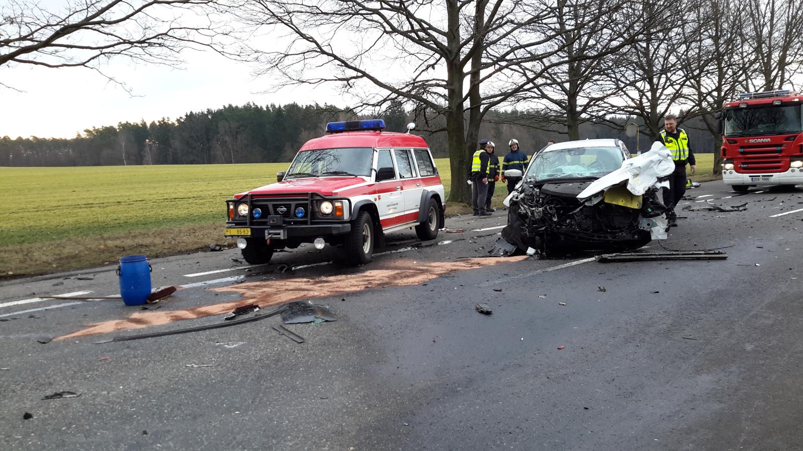 Z jednotek požární ochrany zasahovali profesionální hasiči ze stanice Písek společně s jednotkami SDH obcí Mirovice a Čimelice. Při střetu dvou dodávek a osobního auta byly zraněny dvě osoby, které letecká záchranná služba transportovala do nemocnice. Další tři zraněné osoby ošetřili zdravotníci na místě.