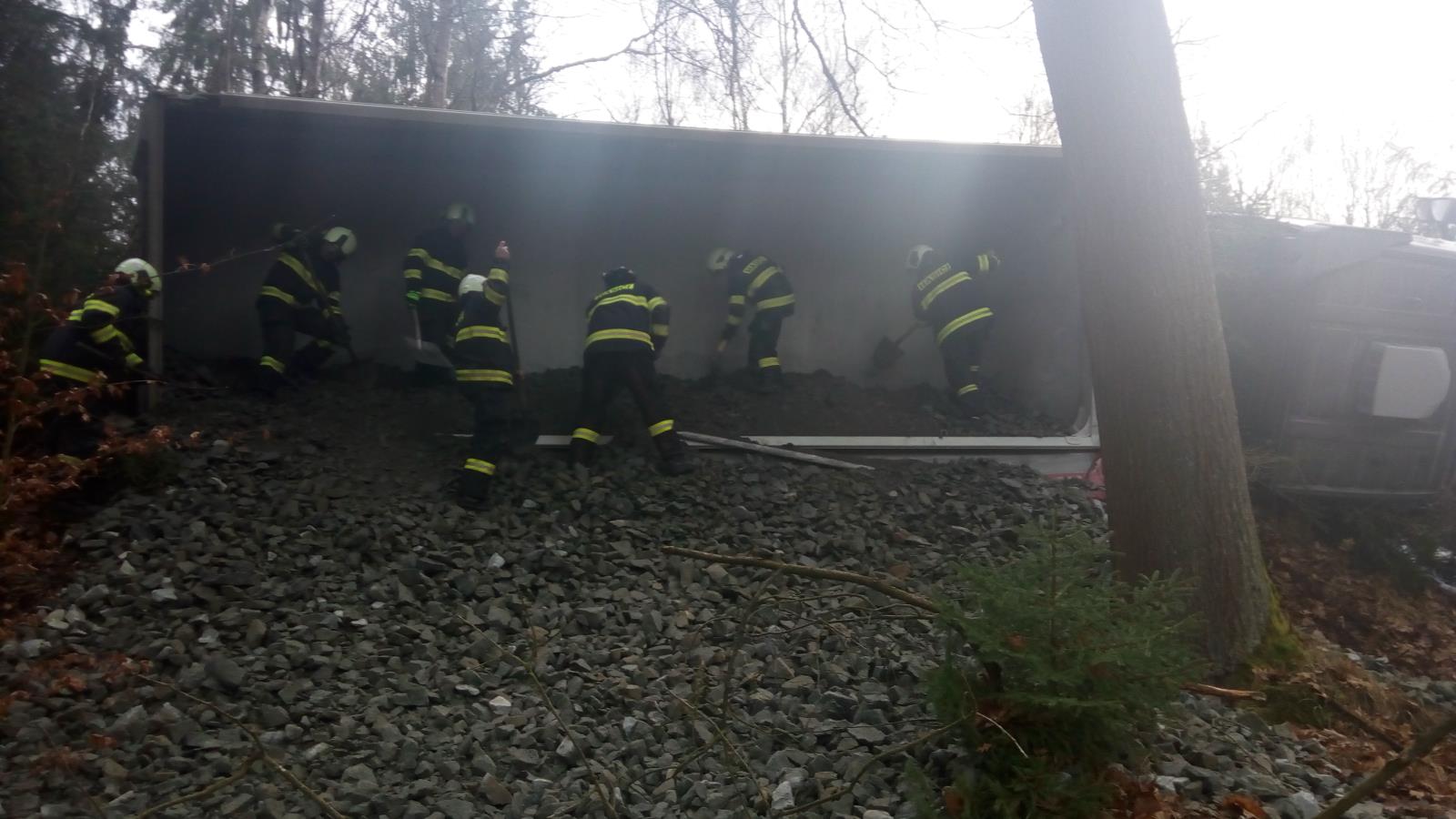 Nehoda u Herbertova, hasiči překládali šest tun štěrku
