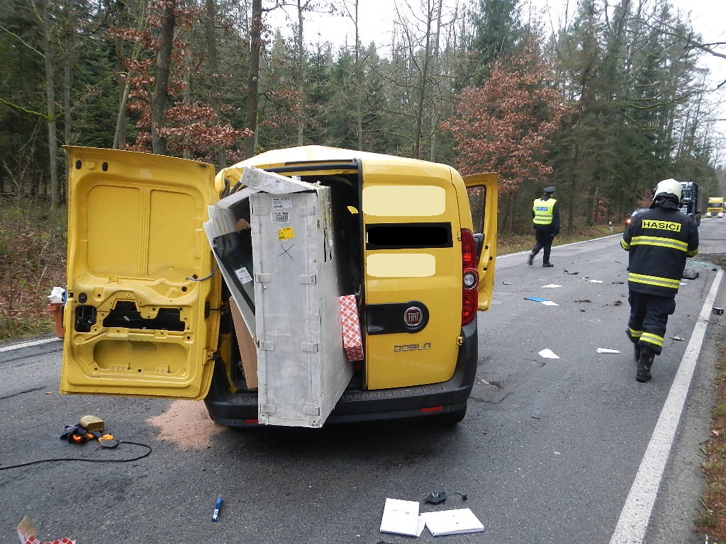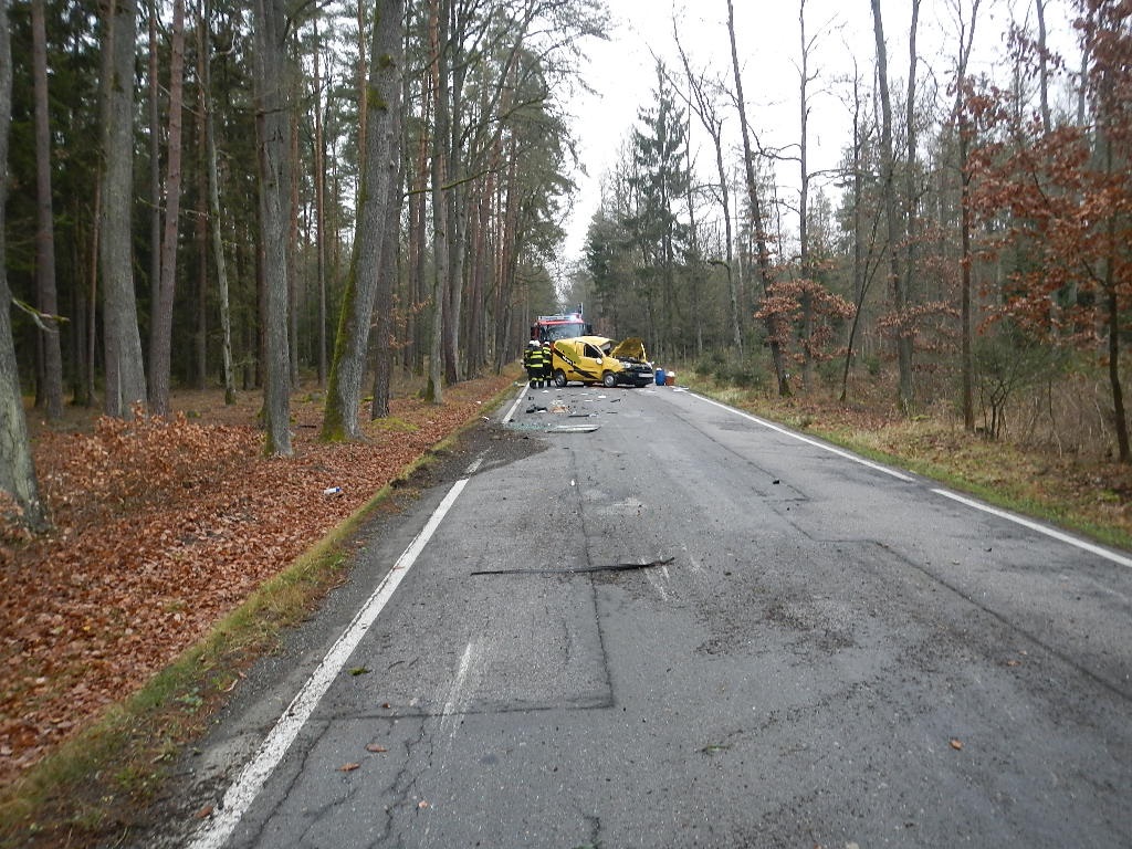 Na silnici vedoucí z Vranína na Slavošovice likvidovali profesionální hasiči ze stanice Třeboň společně se ZZS a Policií ČR následky dopravní nehody osobního auta tovární značky Fiat Doblo.