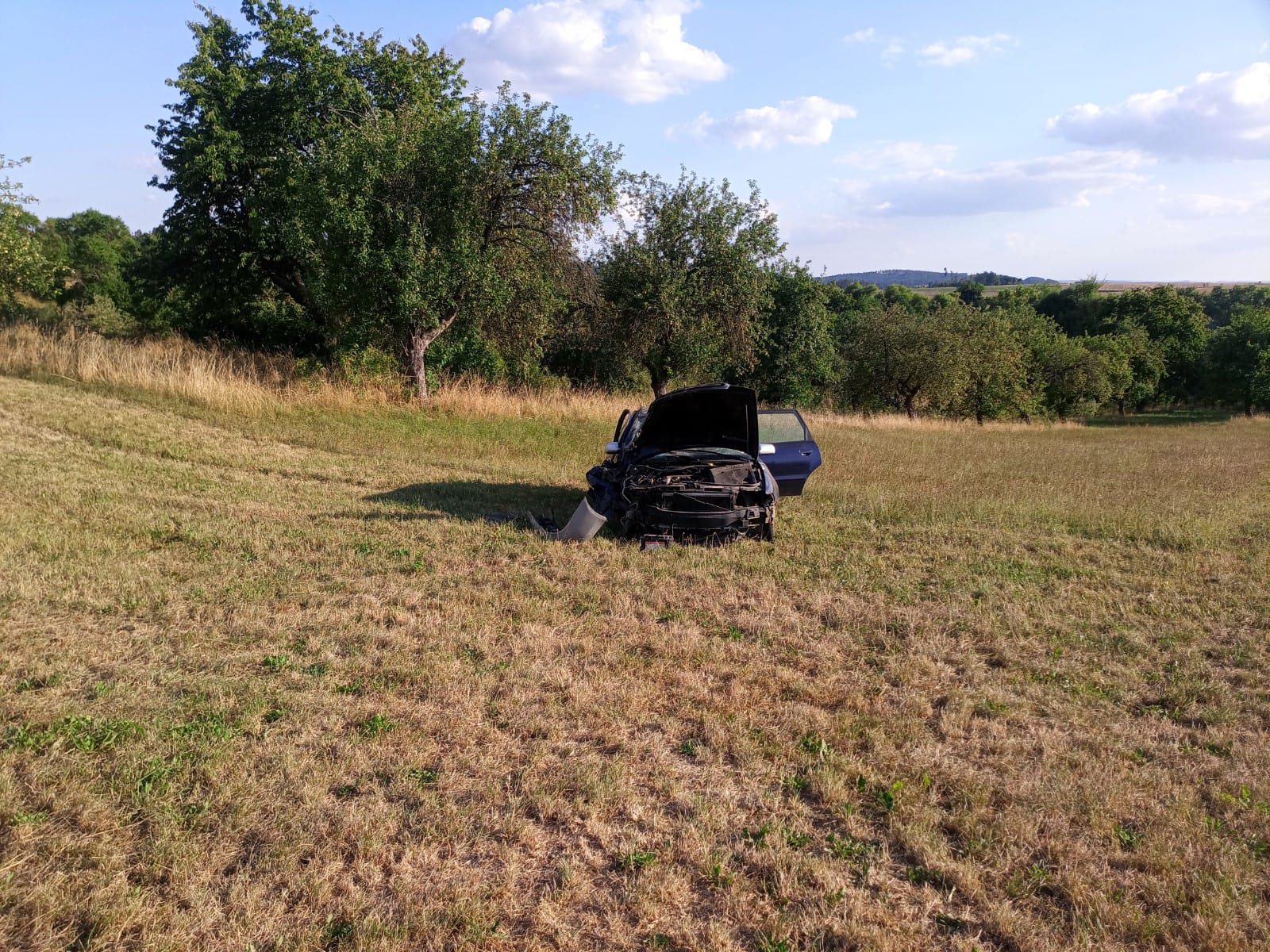 U další nehody zasahovali od 17:48 hodin profesionální hasiči ze stanice Dačice. Jednalo se o nehodu osobního auta značky Audi, které za Slavonicemi ve směru na Slavětín vyjelo ze silnice, narazilo do stromu a zůstalo zcela mimo komunikaci. Zraněného řidiče ošetřovali zdravotníci ZZS, vyproštění nebylo potřeba. Dačická jednotka provedla zajištění havarovaného auta a místa nehody a provedla kontrolu úniku provozních kapalin.