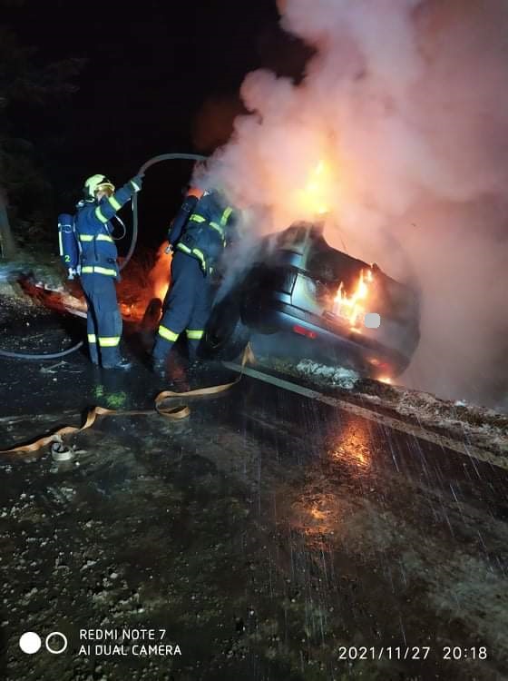 Minutu po 20. hodině přijalo v sobotu 27. listopadu operační středisko hasičů informaci o požáru osobního auta, které hoří u Kunžaku...