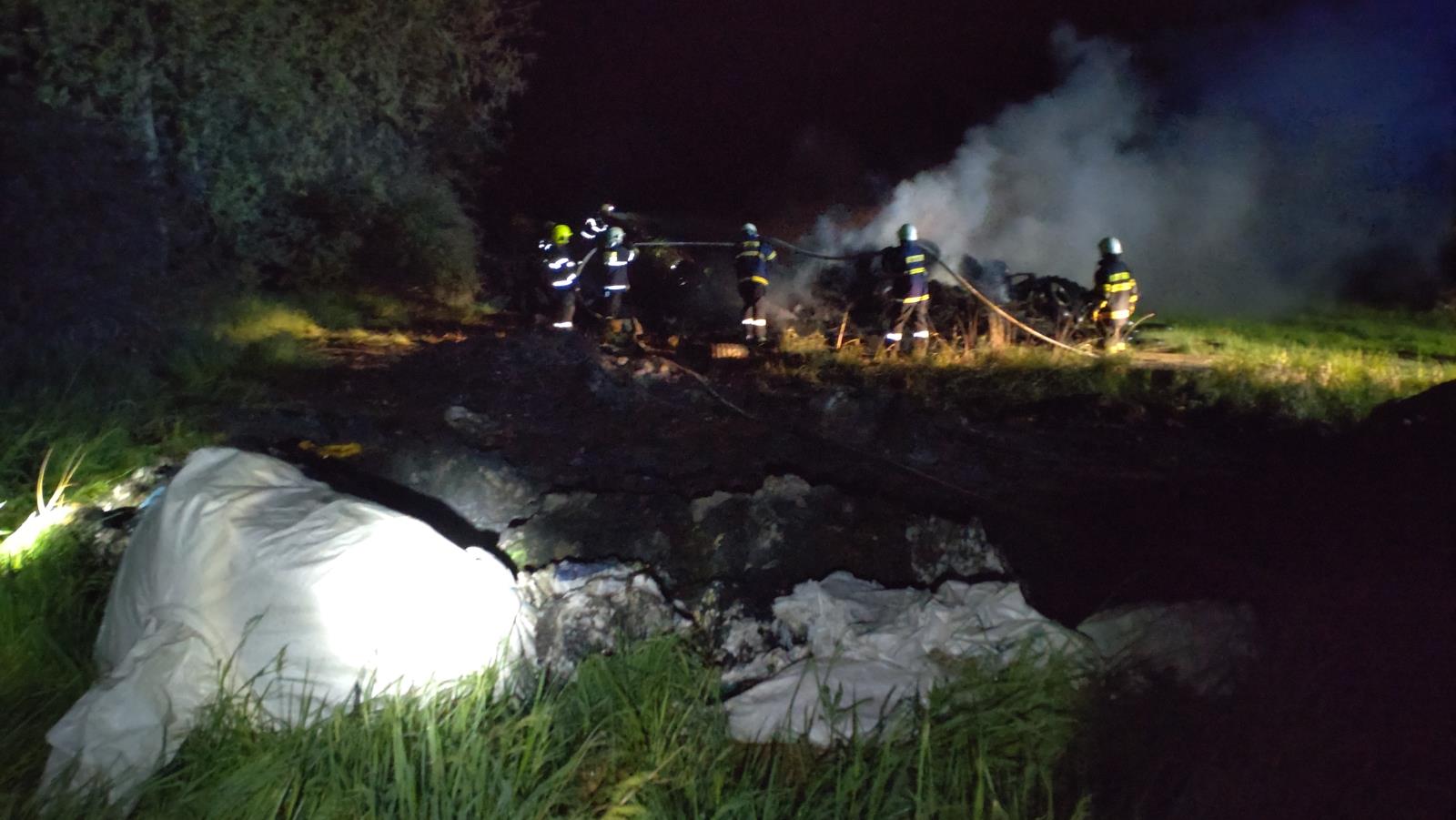 Noční požár skládky v Brloze