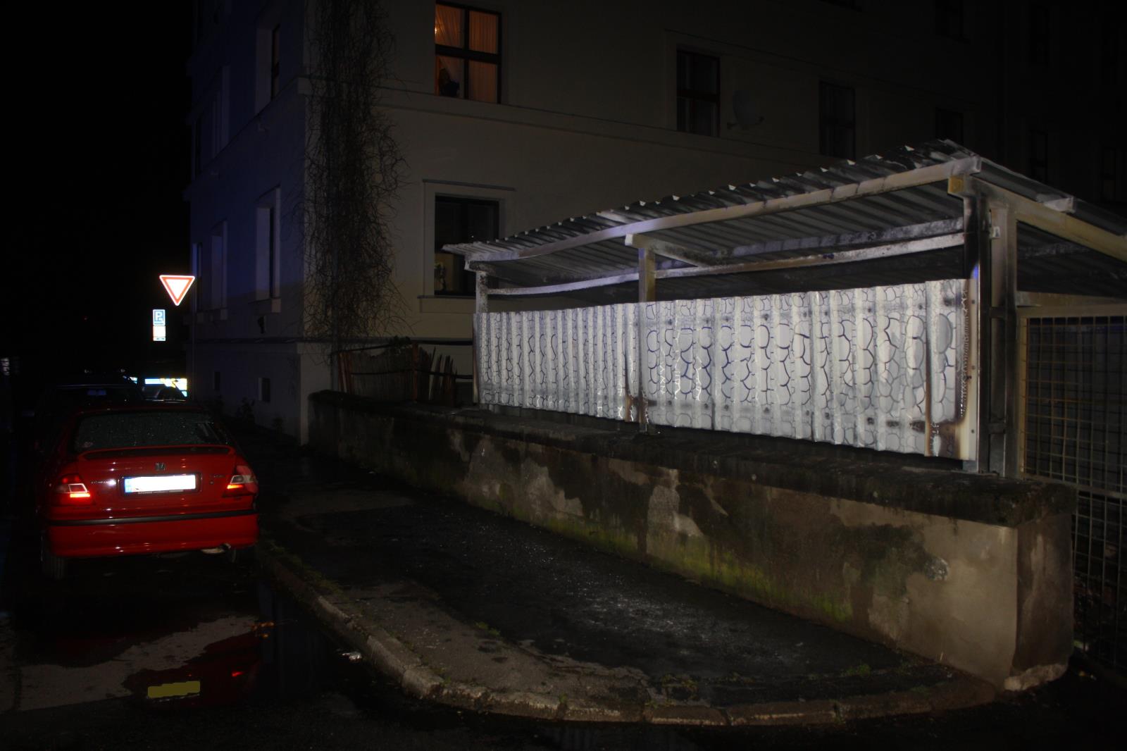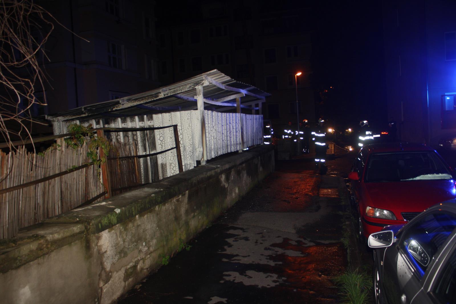 vyjela 47 minut po půlnoci do Nerudovy ulice v Českých Budějovicích, kde hořelo 8 plastových kontejnerů na odpad. Hořící kontejnery stály pod plechovým přístřeškem, požárem byly ohroženy a následně i poničeny dva vedle zaparkované osobní vozy.