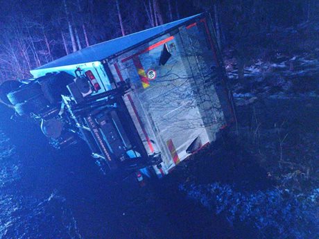 Noční střet osobního a nákladního vozu zaměstnal záchranné složky