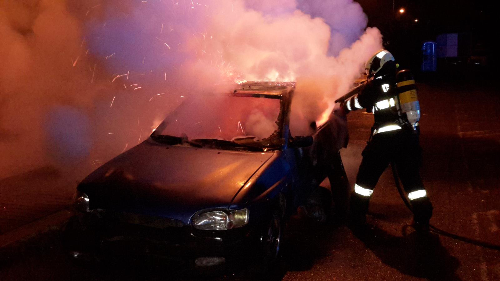Osádka cisterny profesionálních hasičů ze stanice České Budějovice zasahovala v Českých Budějovicích v noci ze čtvrtka , 28. června 2018, na pátek, 29.června 2018, u požáru osobního automobilu.