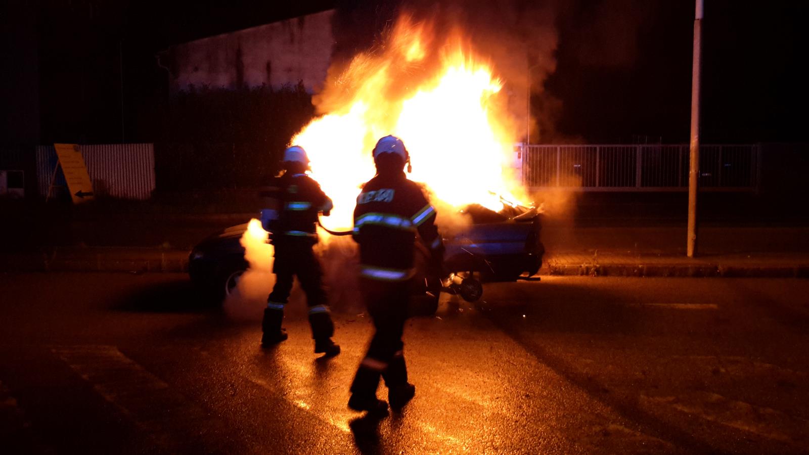 V době příjezdu hasičů hořel kompletně vnitřek vozu. Jednotka na likvidaci požáru nasadila jeden vysokotlaký proud. Zásah hasiči vedli v dýchací technice. Vyšetřovatel HZS posoudil, že požárem vraku nevznikla žádná škoda.
