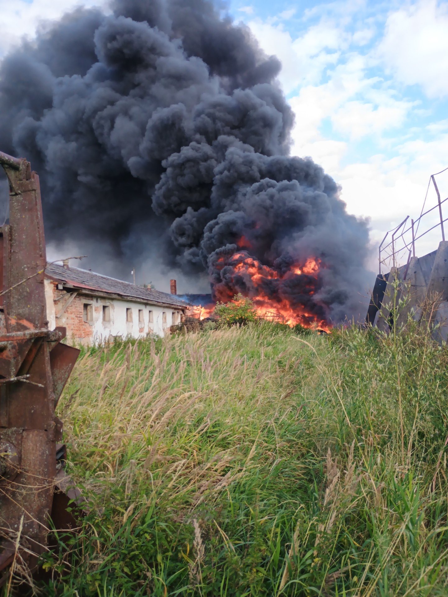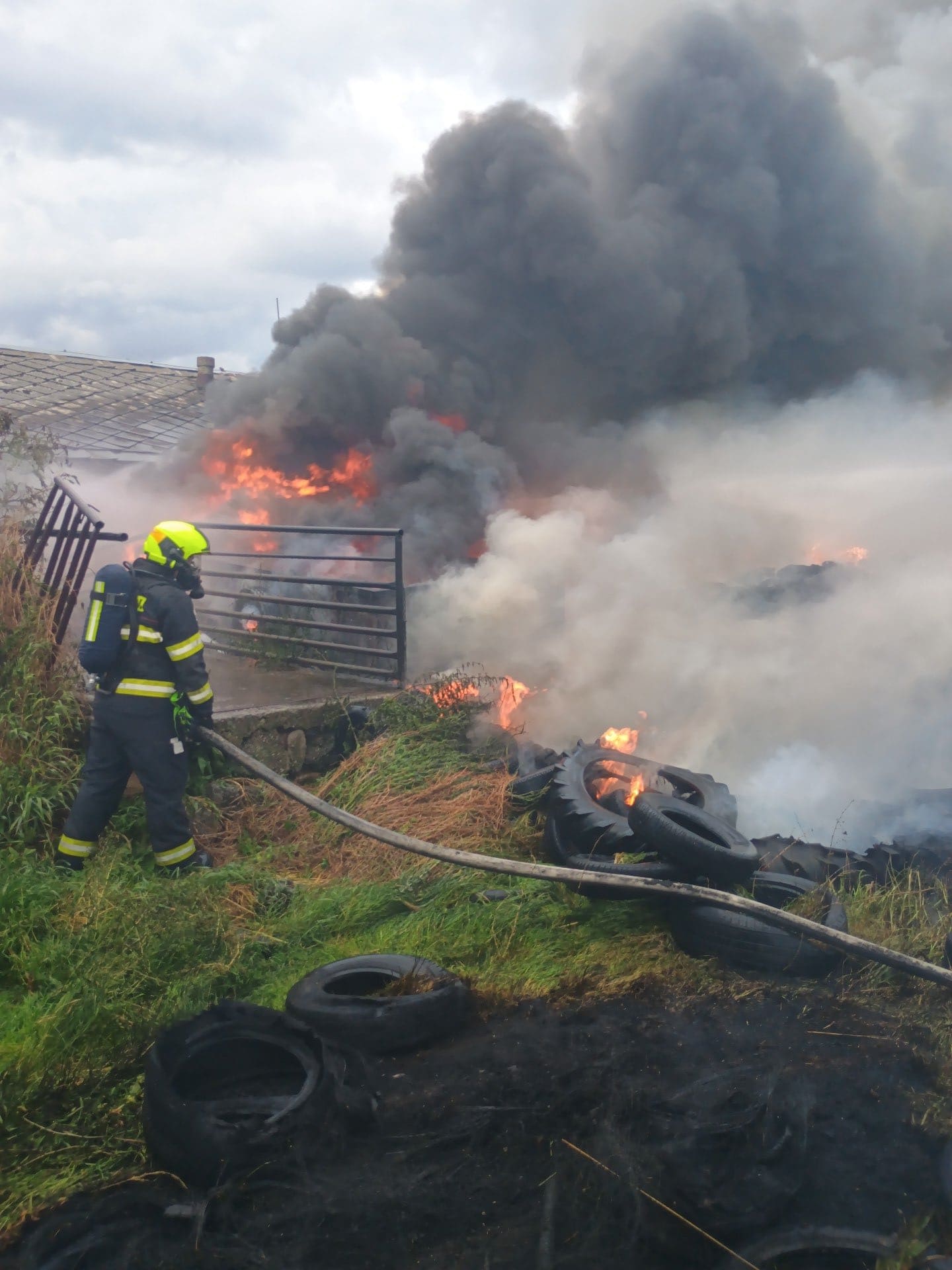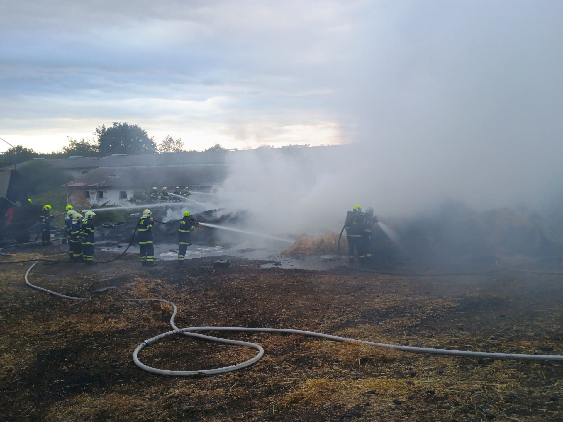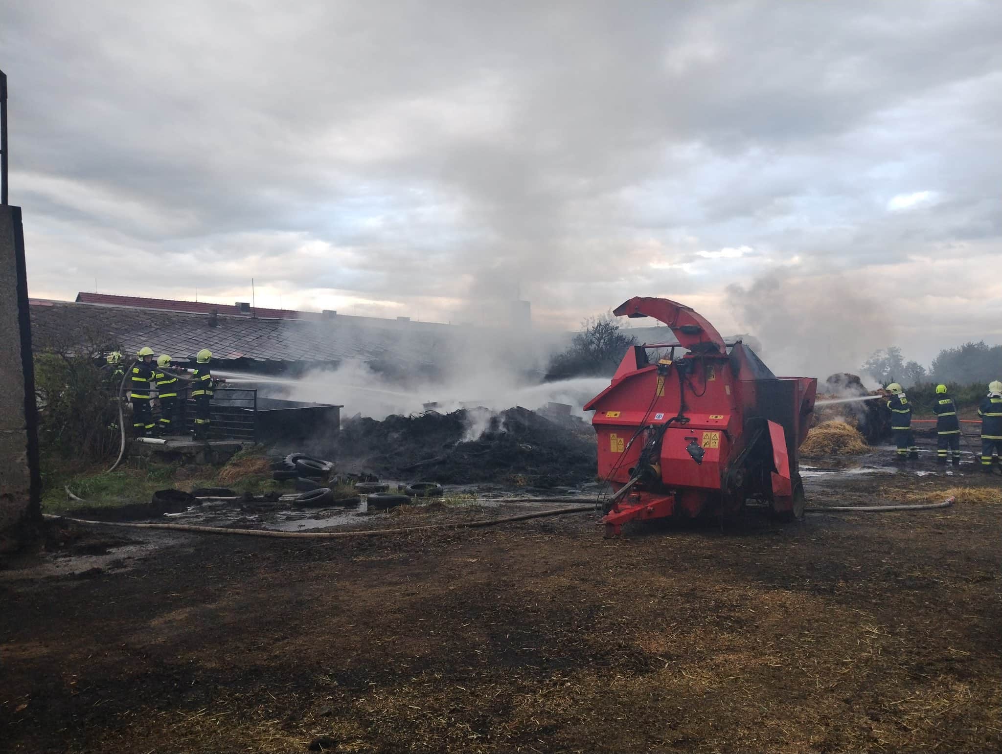 Požár balíků slámy a pneumatik ohrožoval telata, hasiči rychle zasáhli