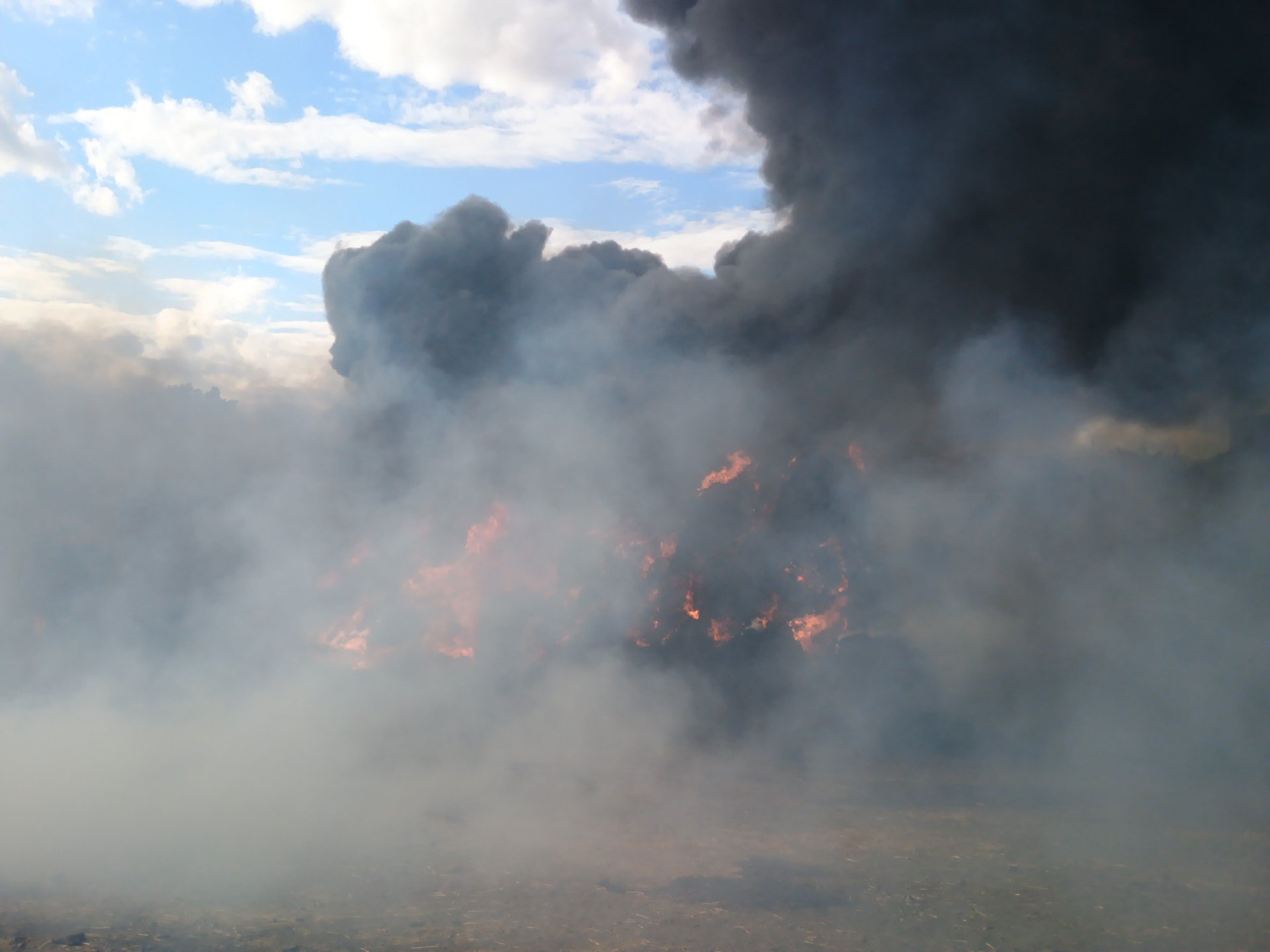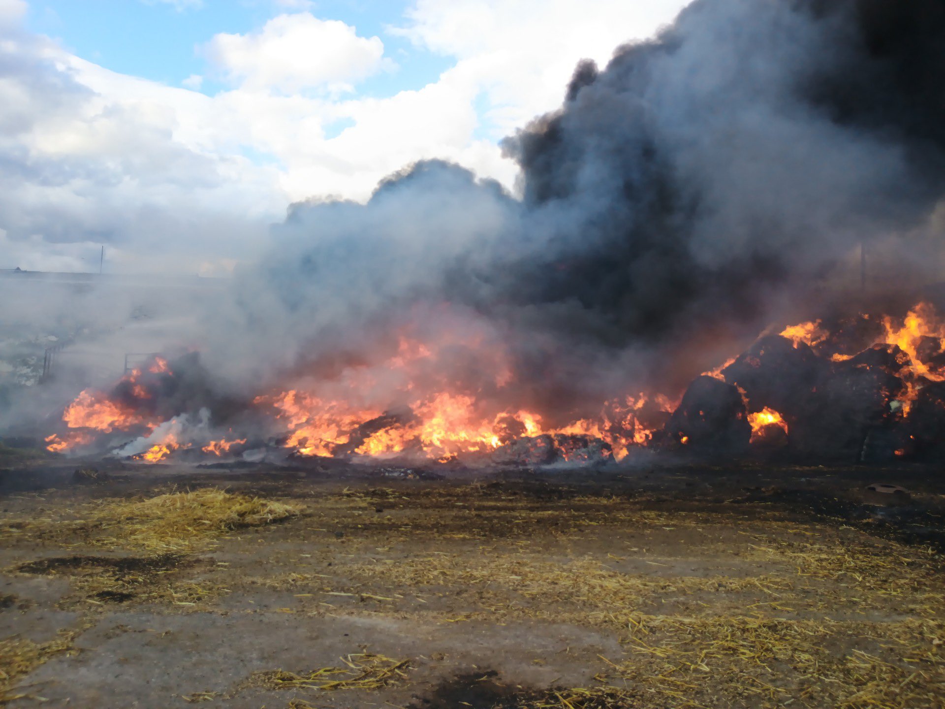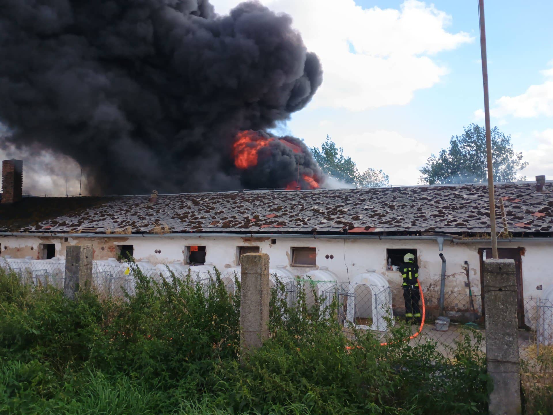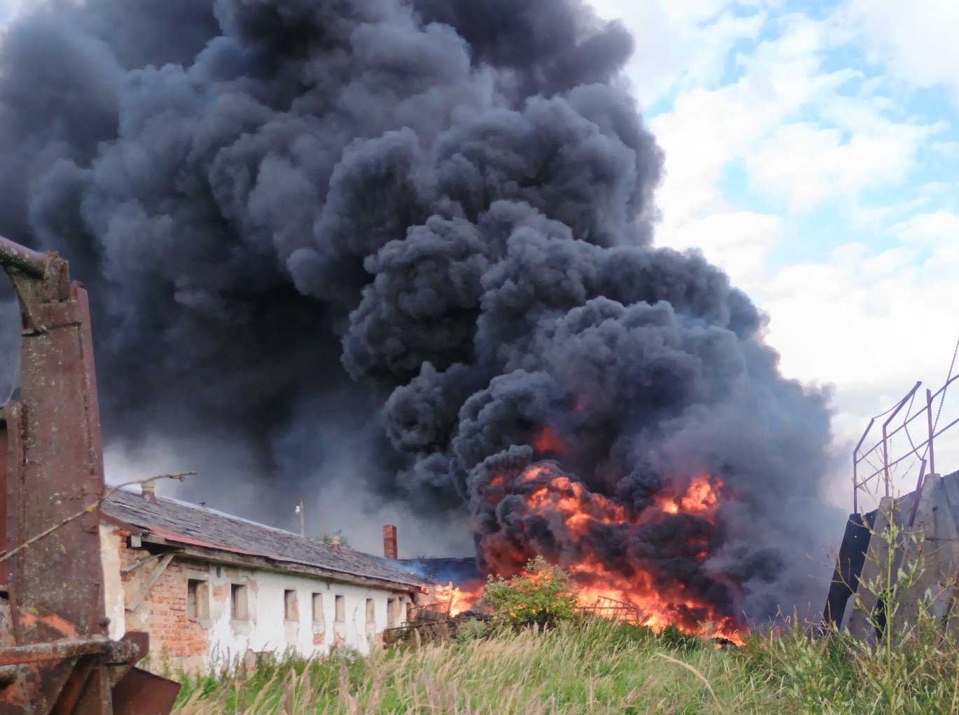 Požár balíků slámy a pneumatik ohrožoval telata, hasiči rychle zasáhli