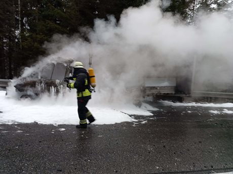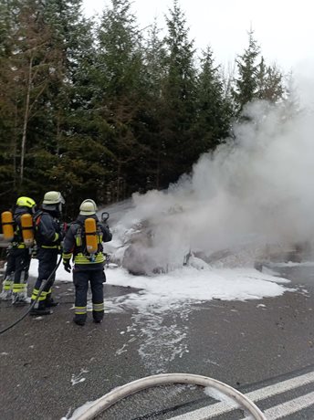 Ve čtvrtek dopoledne zasahovali profesionální hasiči z Vimperku, dobrovolní hasiči z Volar i jednotky z Německa u požáru dodávky, která vzplála v plném rozsahu. Při zásahu museli zajistit tlakové lahve a řešit únik nafty na zledovatělé komunikaci. Událost způsobila výrazná dopravní omezení.