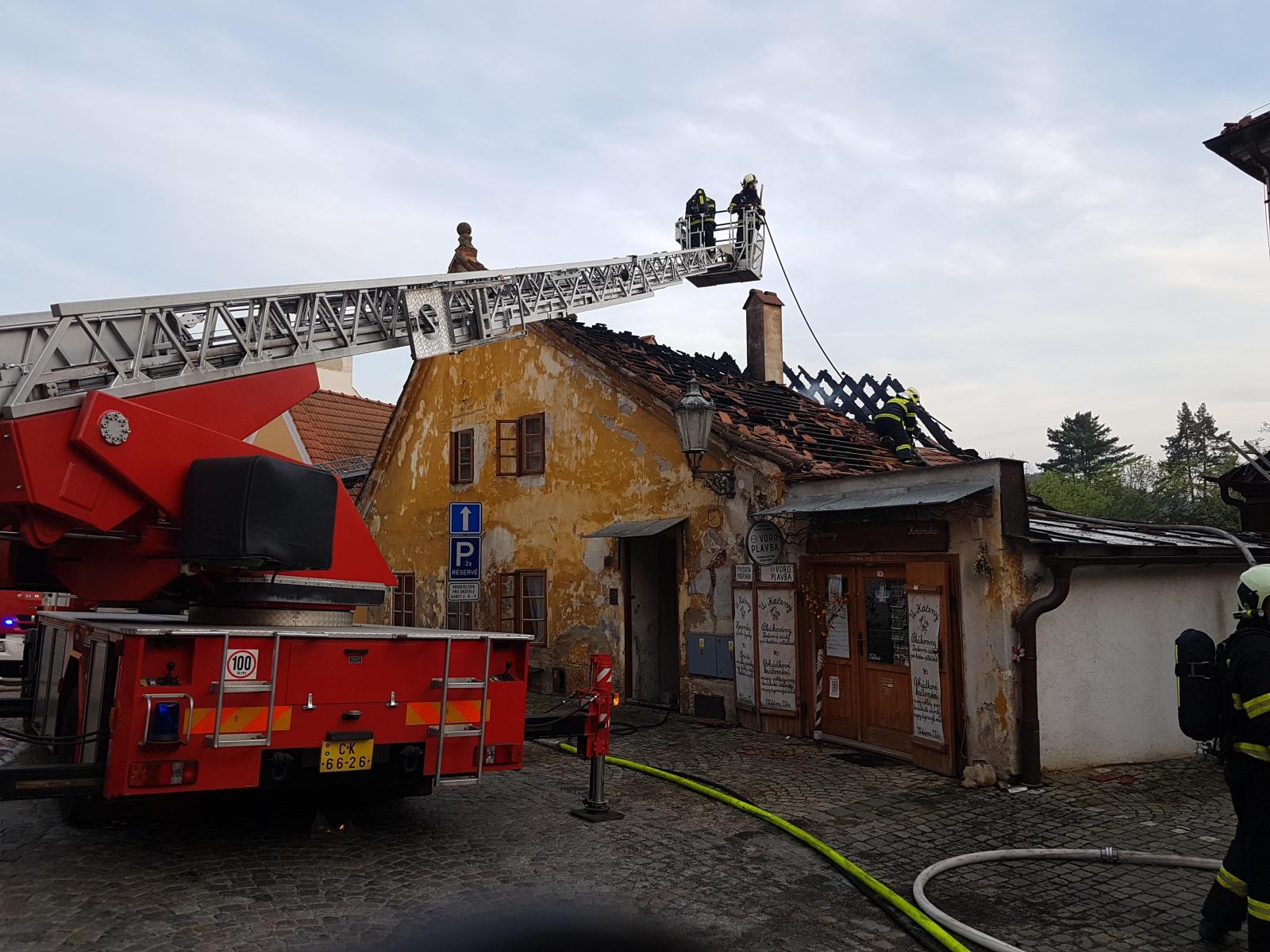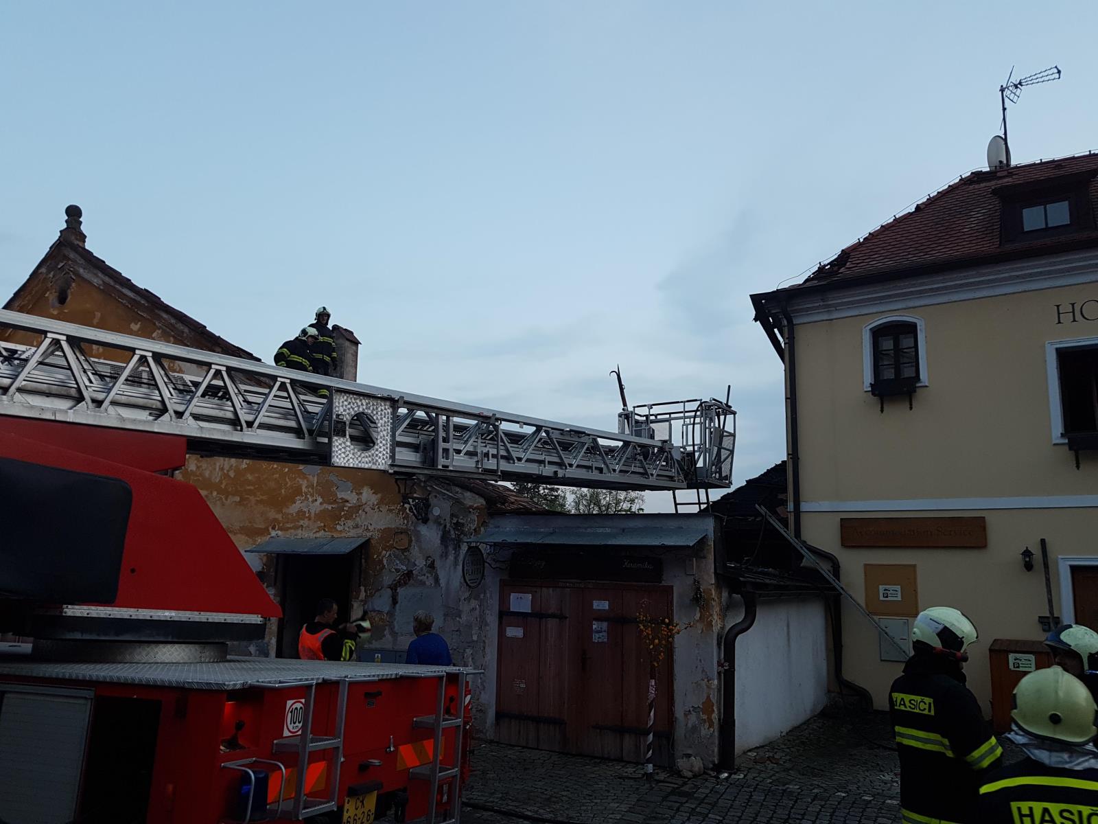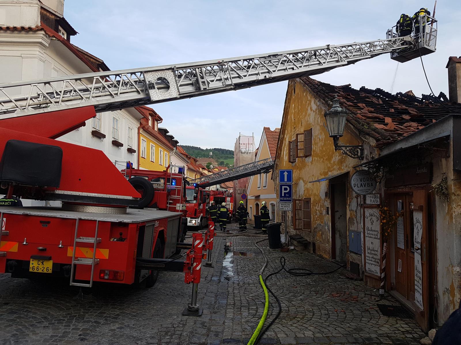 K požáru v 16:30 hodin vyjeli včetně výškové techniky profesionální hasiči z českokrumlovské stanice, svolána byla českokrumlovská dobrovolná jednotka.