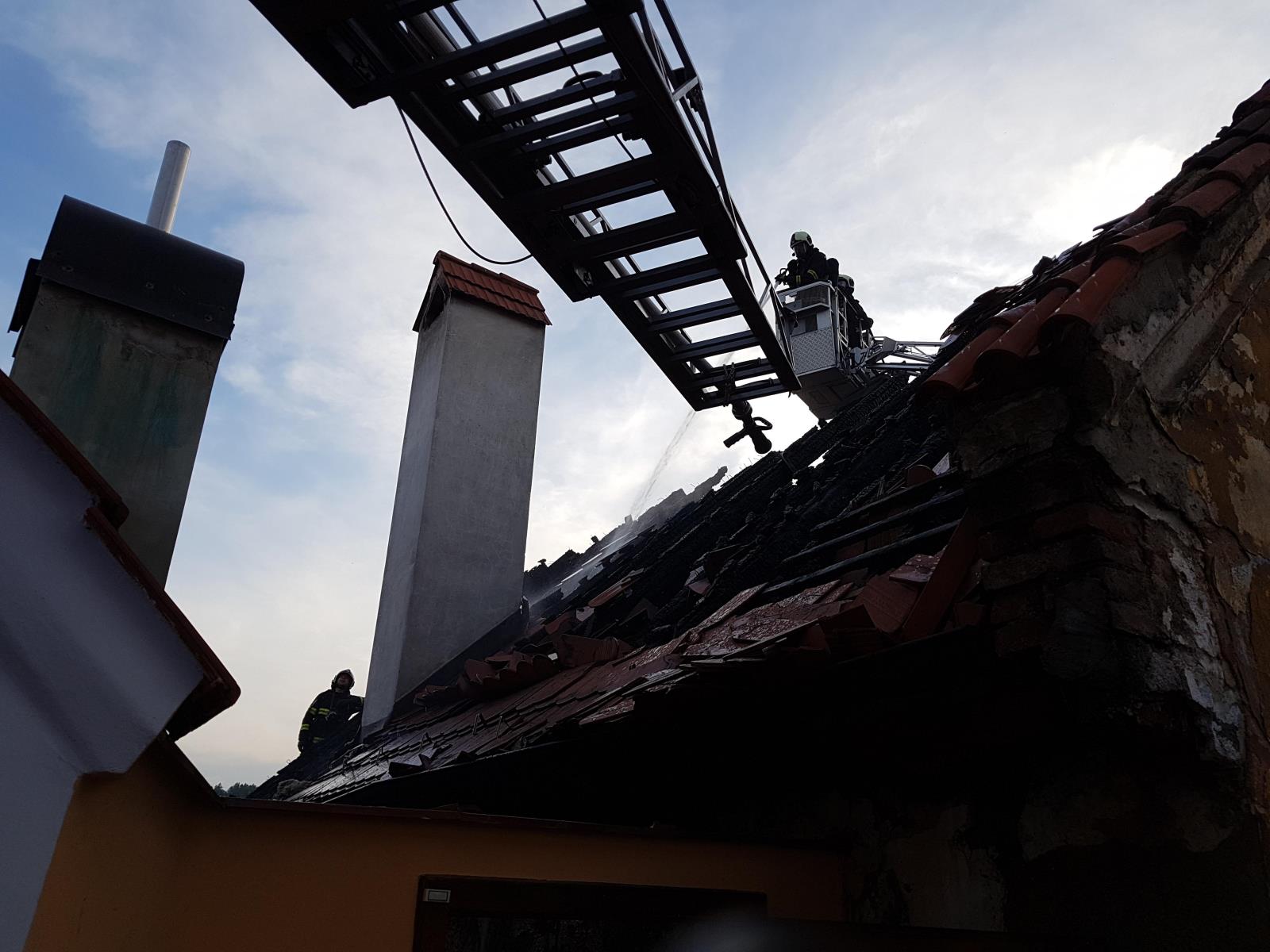 Kompletně zničené krovy museli hasiči postupně zbavit střešní krytiny a následně strhnout. Další ohniska, která hasiči prolévali vodou, se našla pomocí termokamery.