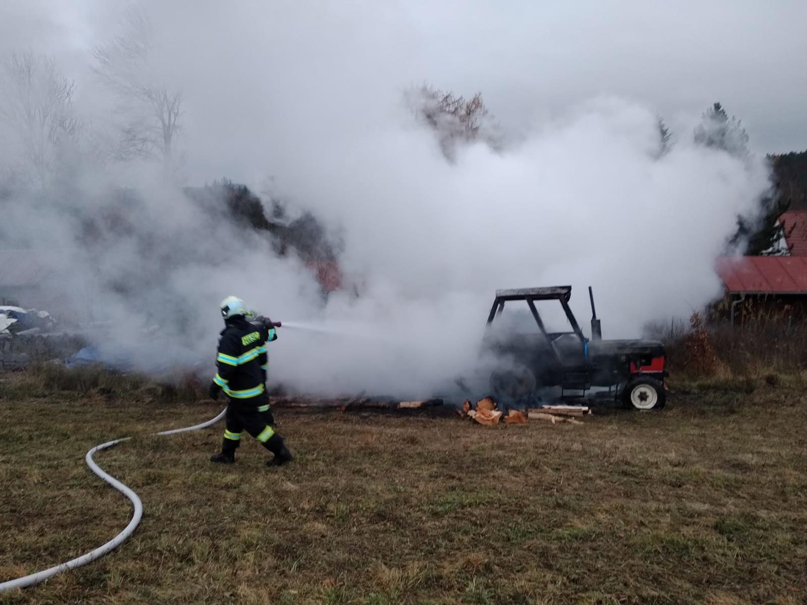 K ohlášenému požáru dřeva byli v 7:09 hodin vysláni profesionální hasiči ze stanice Jindřichův Hradec a svoláni dobrovolní hasiči obce Kunžak. Průzkum na místě ukázal, že hoří dvě hromady dřeva, ale zároveň je požárem zasažen malý traktor. Přibližně po půl hodině hašení dostali hasiči požár pod kontrolu, velitel zásahu v rovných 8 hodin nahlásil lokalizaci požáru. Následná úplná likvidace požáru nastala o čtvrthodinku později.