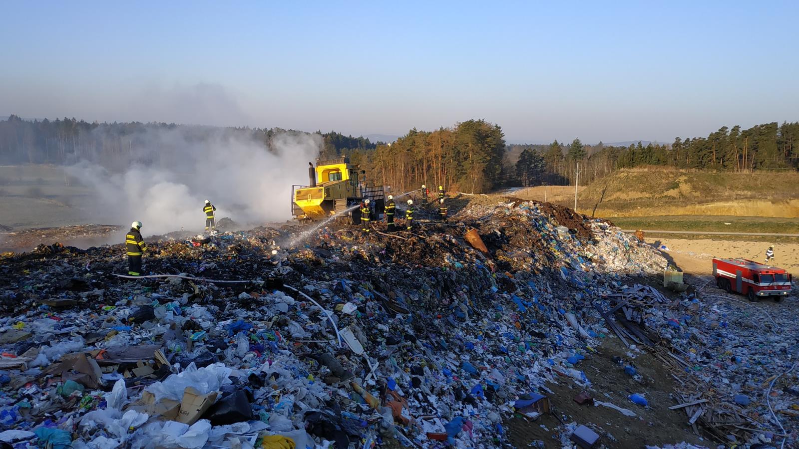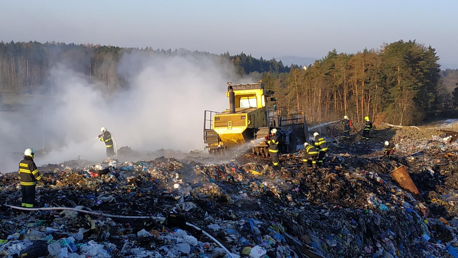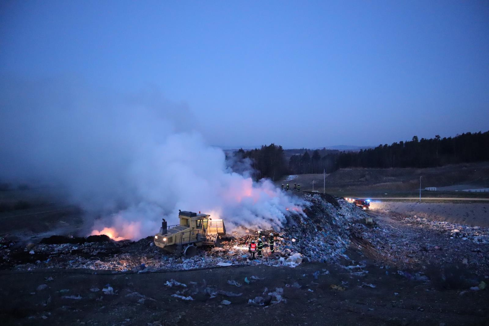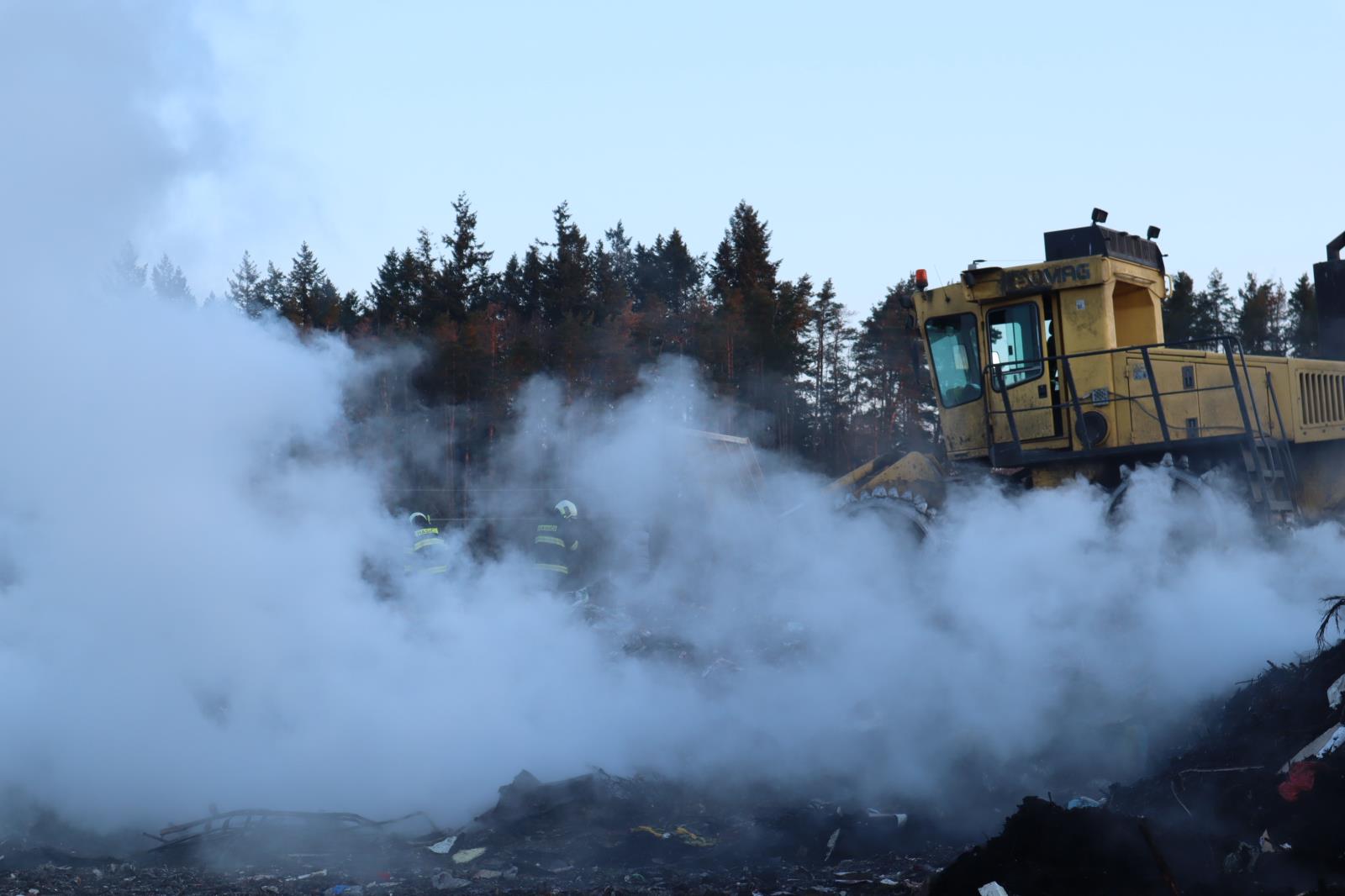 Požár na skládce u Smrkovic stále trvá