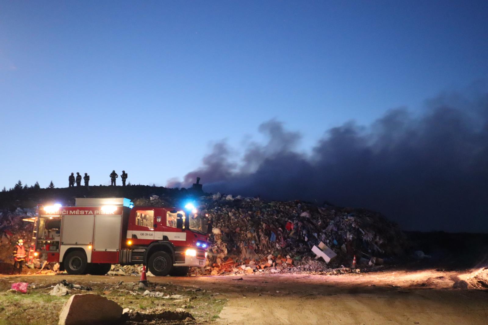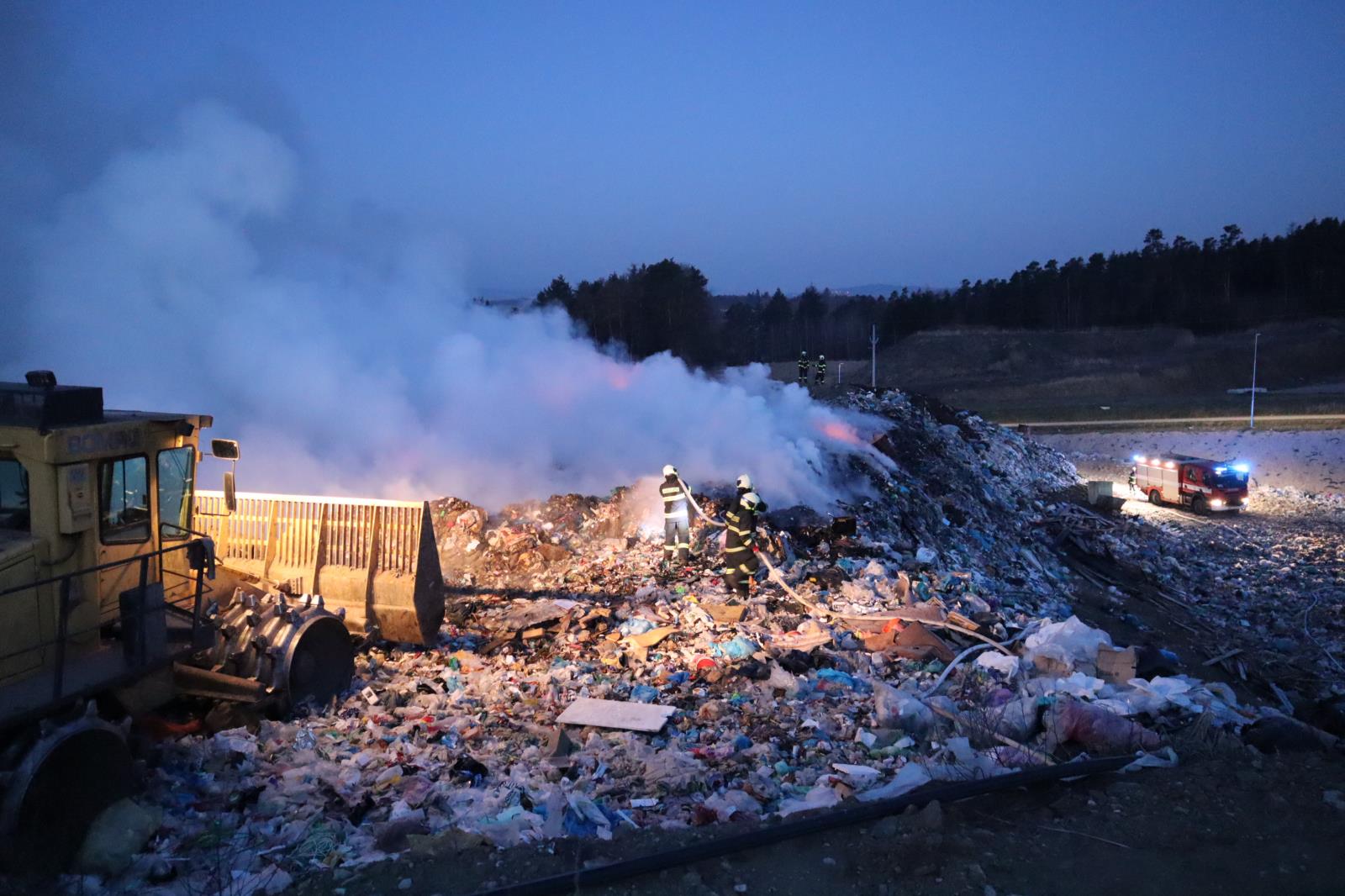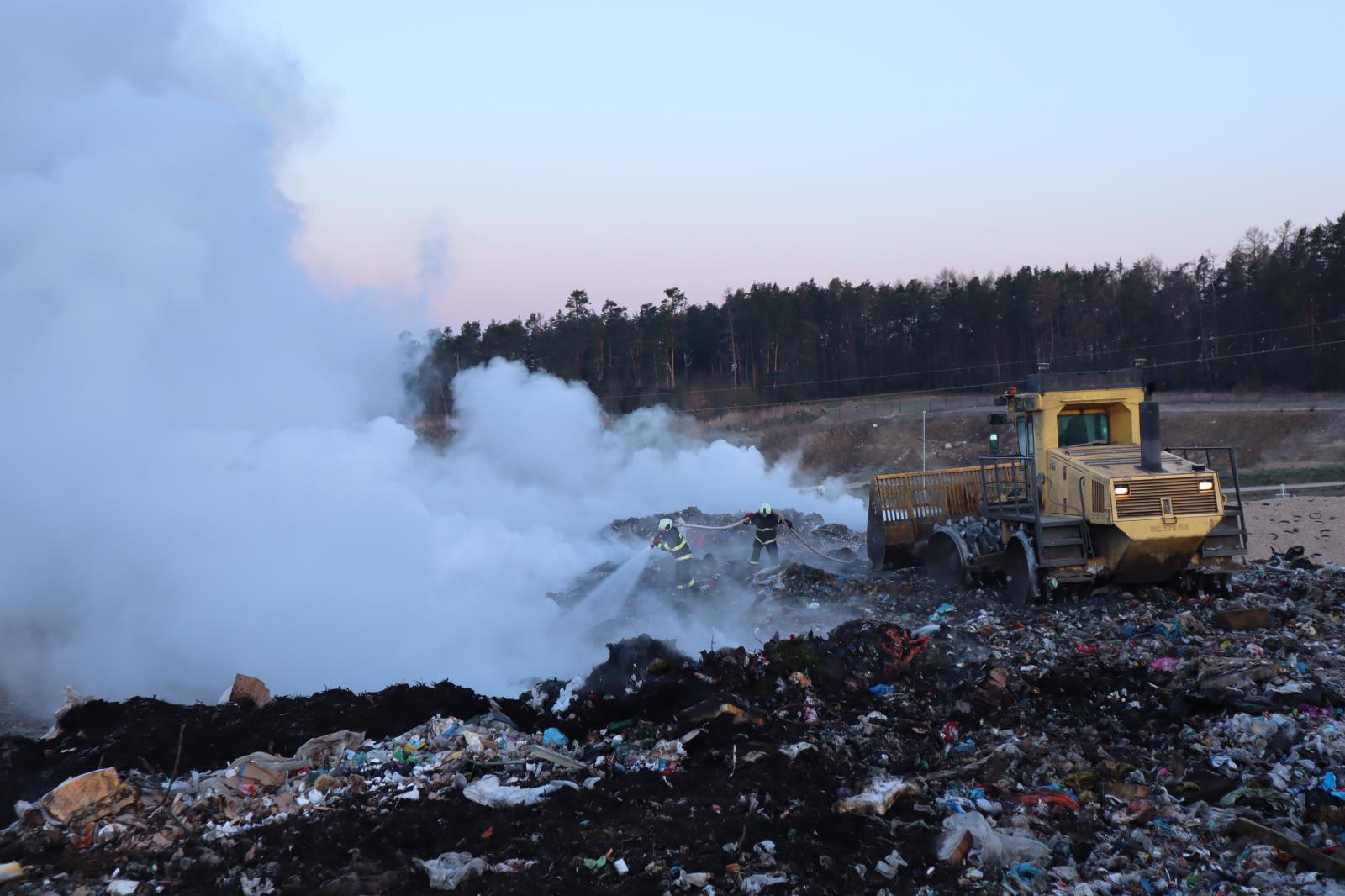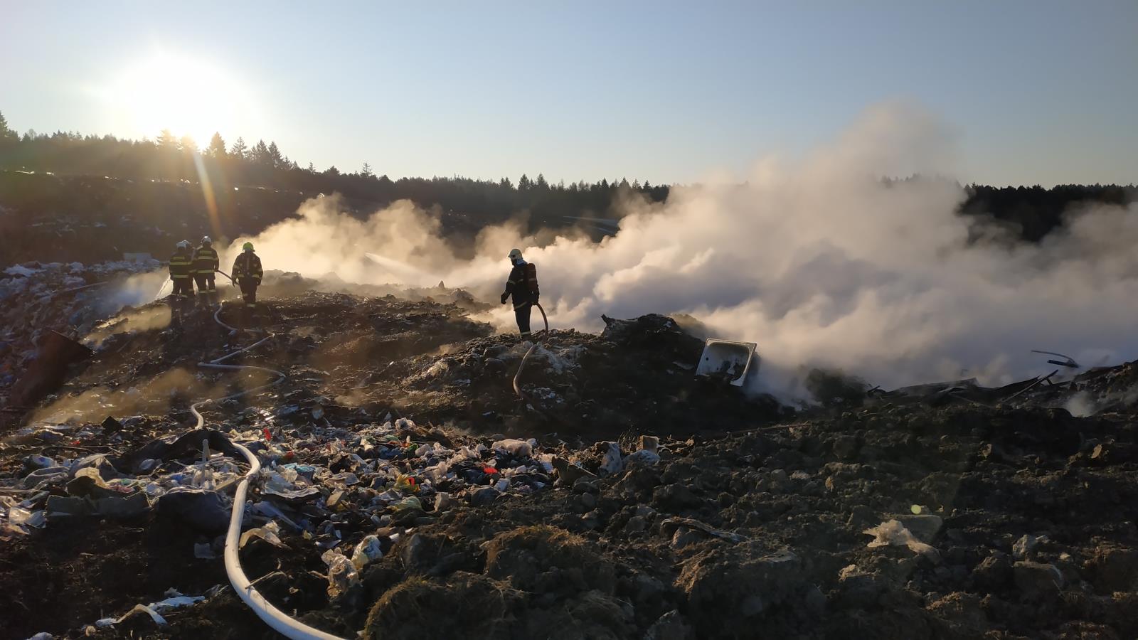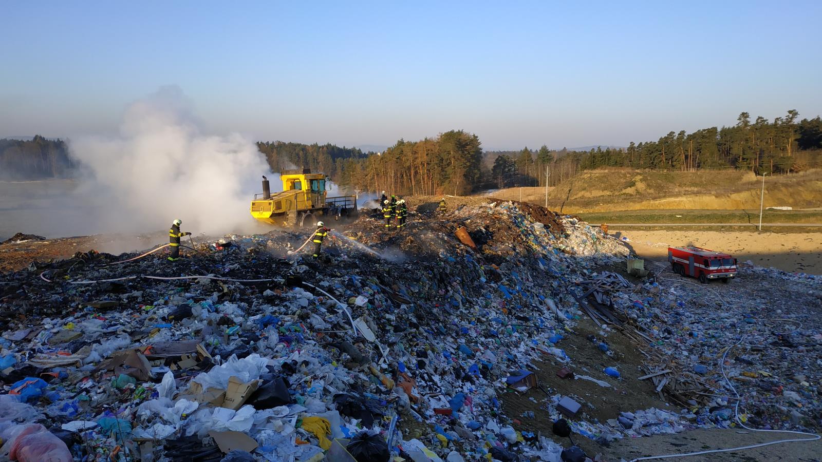 Požár na skládce u Smrkovic stále trvá
