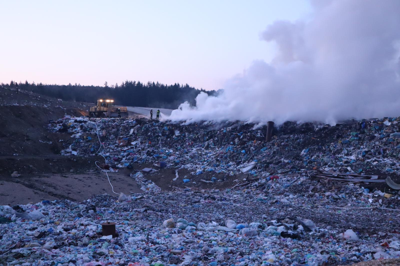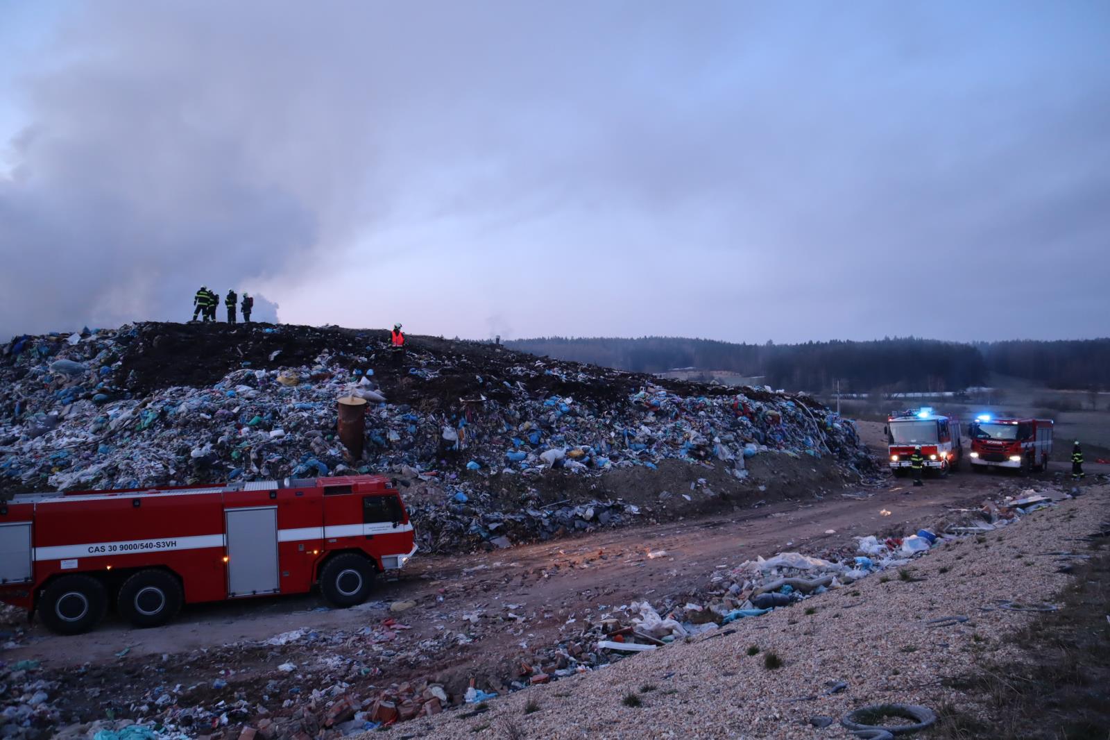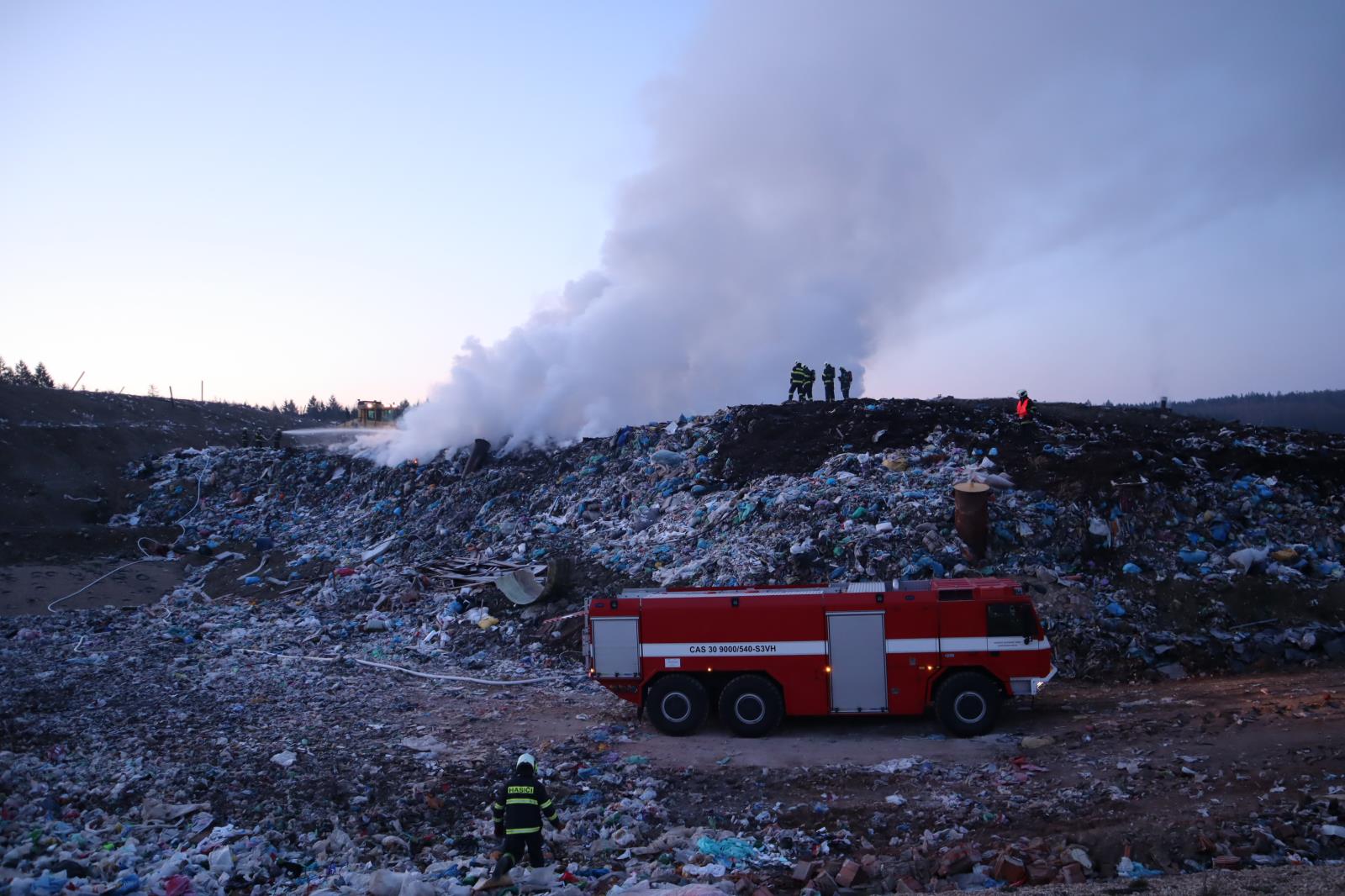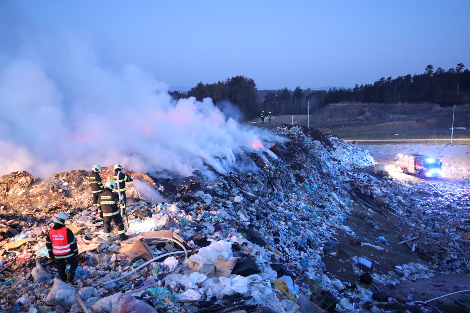 Požár na skládce u Smrkovic stále trvá