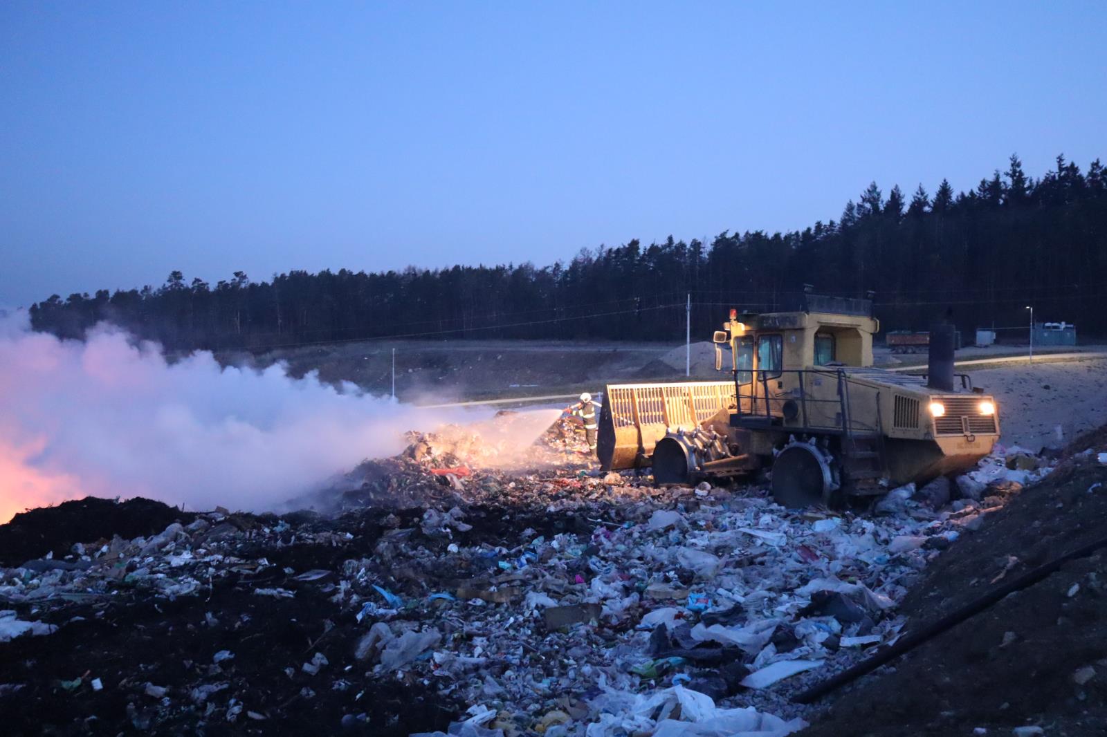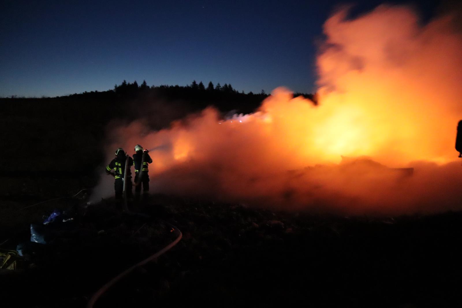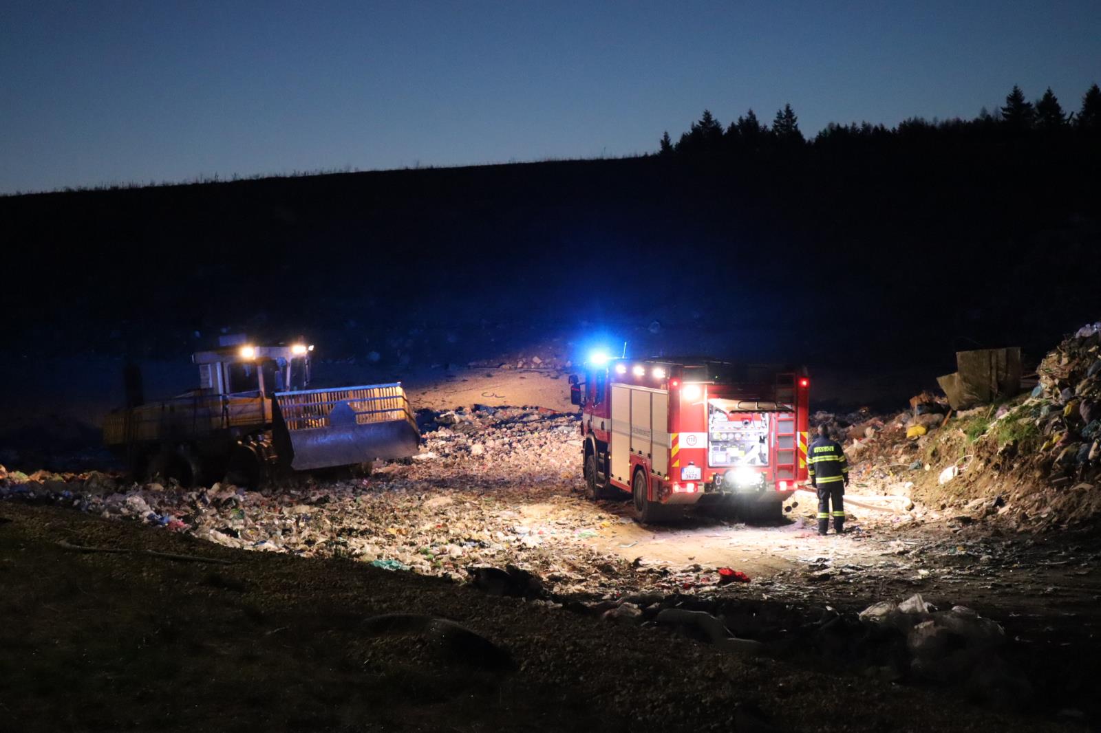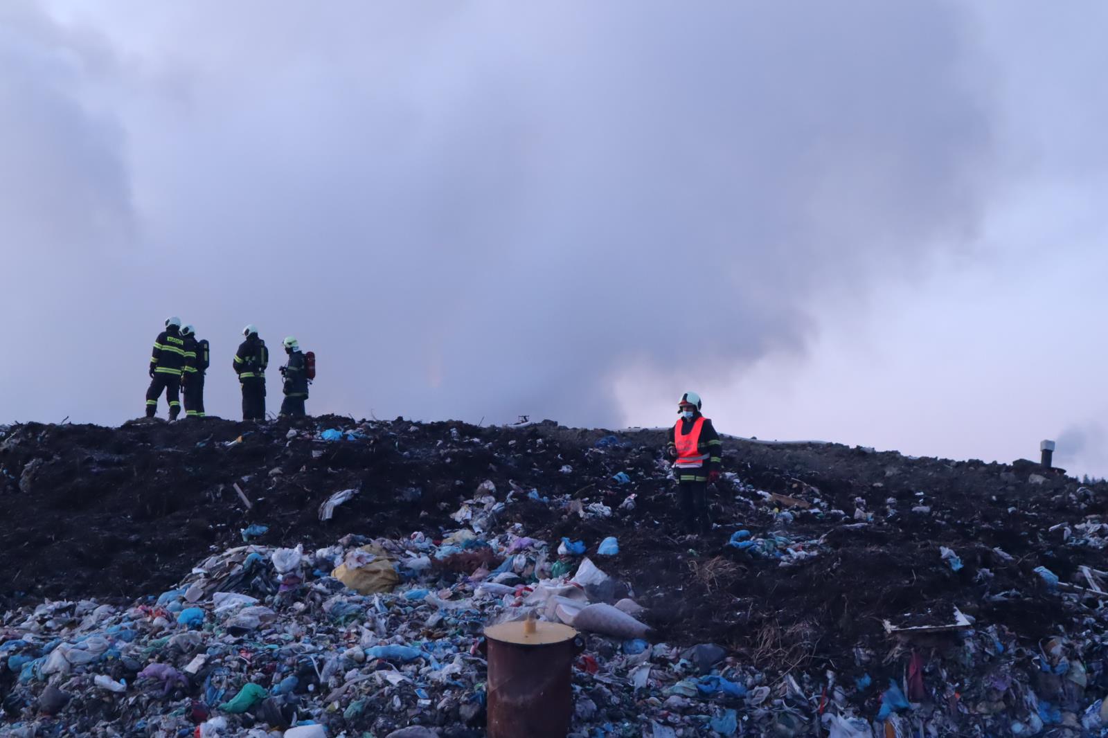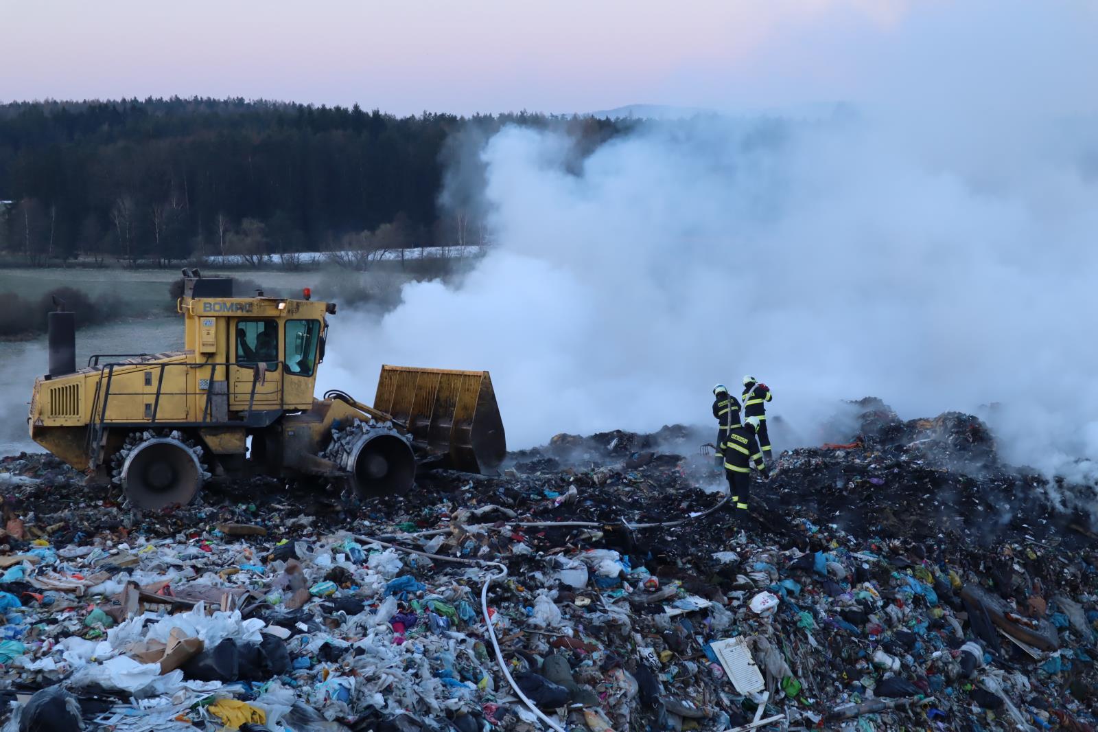 Požár na skládce u Smrkovic stále trvá