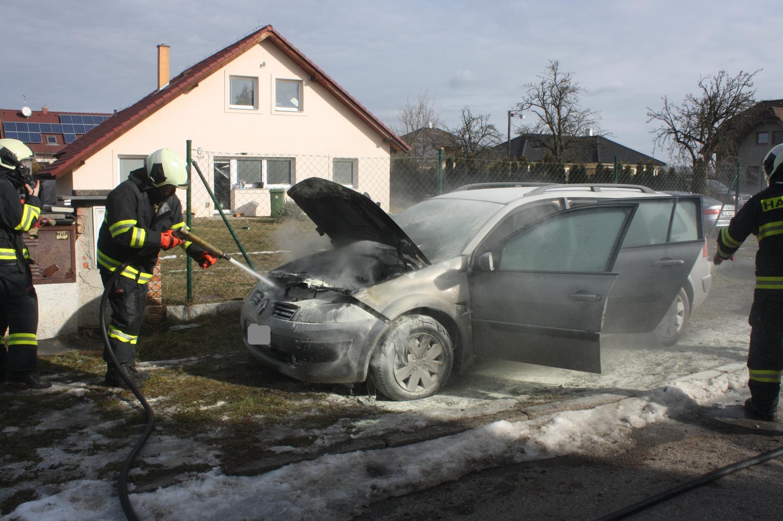 Škodu ve výši 20 000,- vyčíslil vyšetřovatel HZS dnes ,13. února 2019, po požáru osobního auta značky Renault, které hořelo v obci Čejkovice.
