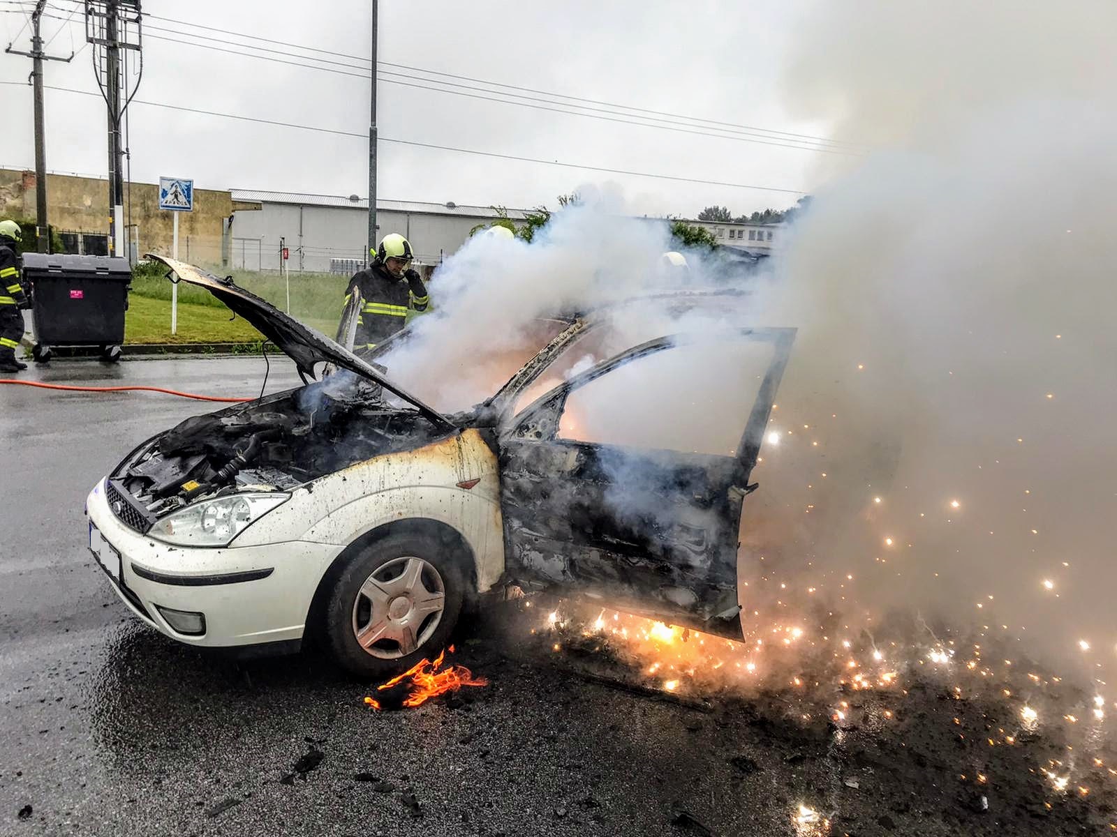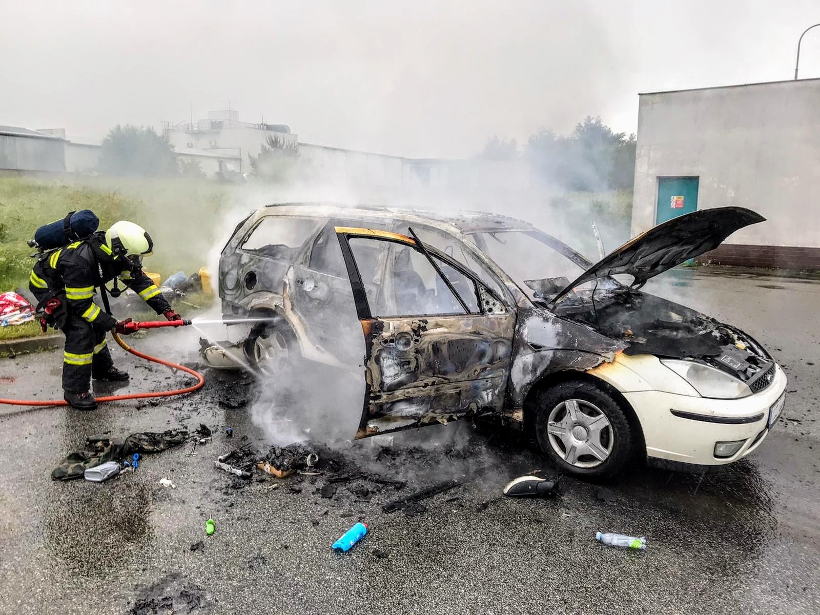 Zatím z nezjištěné příčiny hořelo v Dolní Pěně ve středu 10. června osobní auto.
