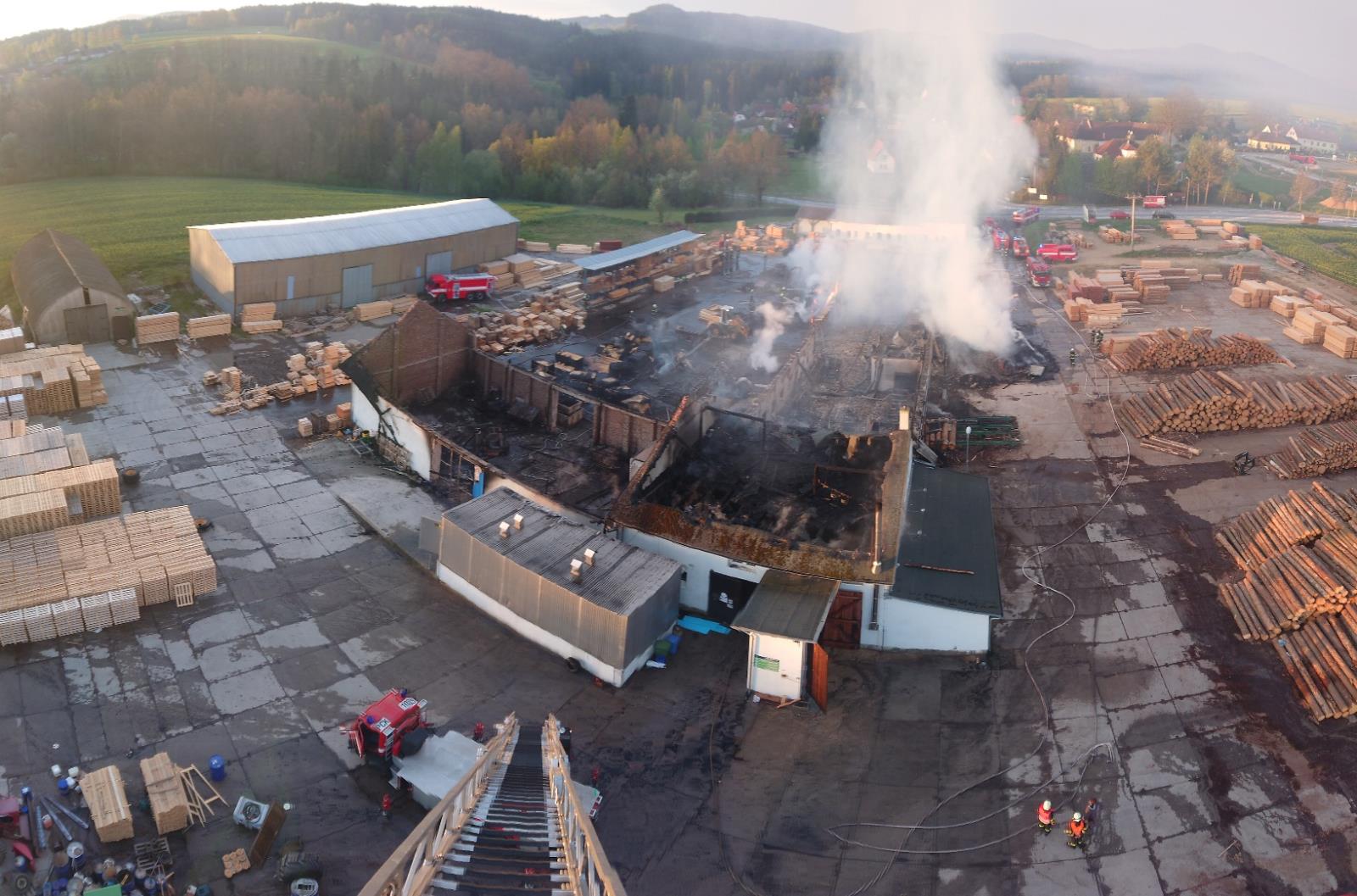 Průzkum na místě požáru ukázal, že požár zasáhnul jeden celý výrobní komplex pily. Hořel objekt postavený