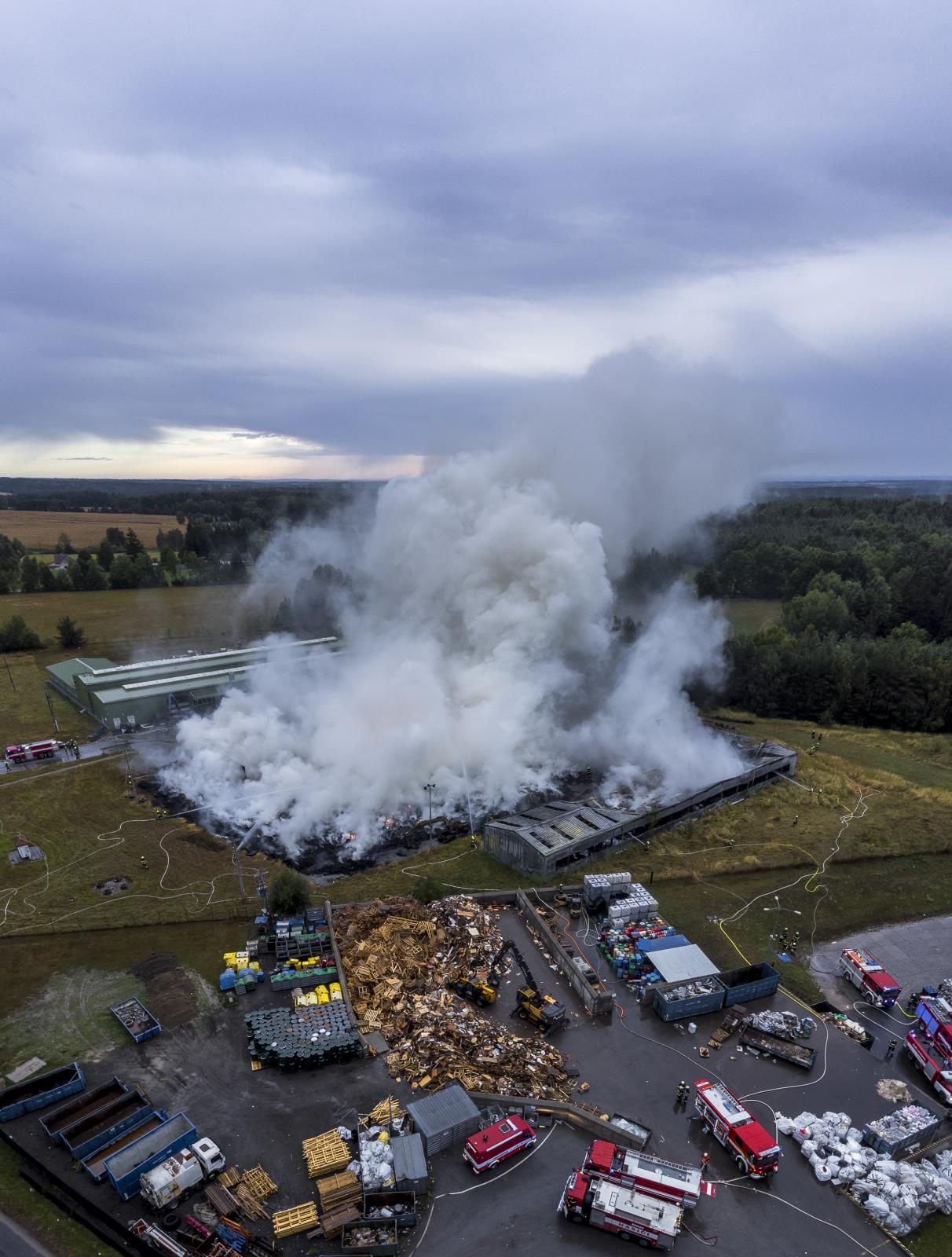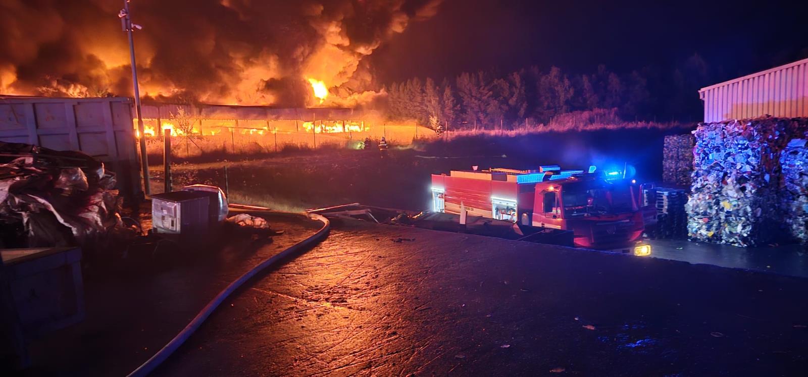 Na místě hasiči zjistili, že skládka pneumatik pod širým nebem hoří na ploše cca 100 x 150 m a plameny dosahují 20 metrů. Zasahovalo 6 profesionálních a 11 dobrovolných jednotek s celkem 26 cisternami, na místě byla i chemická laboratoř. Byl vyhlášen 3. stupeň poplachu. Hasiči zřídili tři čerpací stanoviště na rybnících v okolí. Hasiči prováděli požární obranu, aby uchránili objekty firmy dosud nezasažené požárem a objekty sousední firmy.