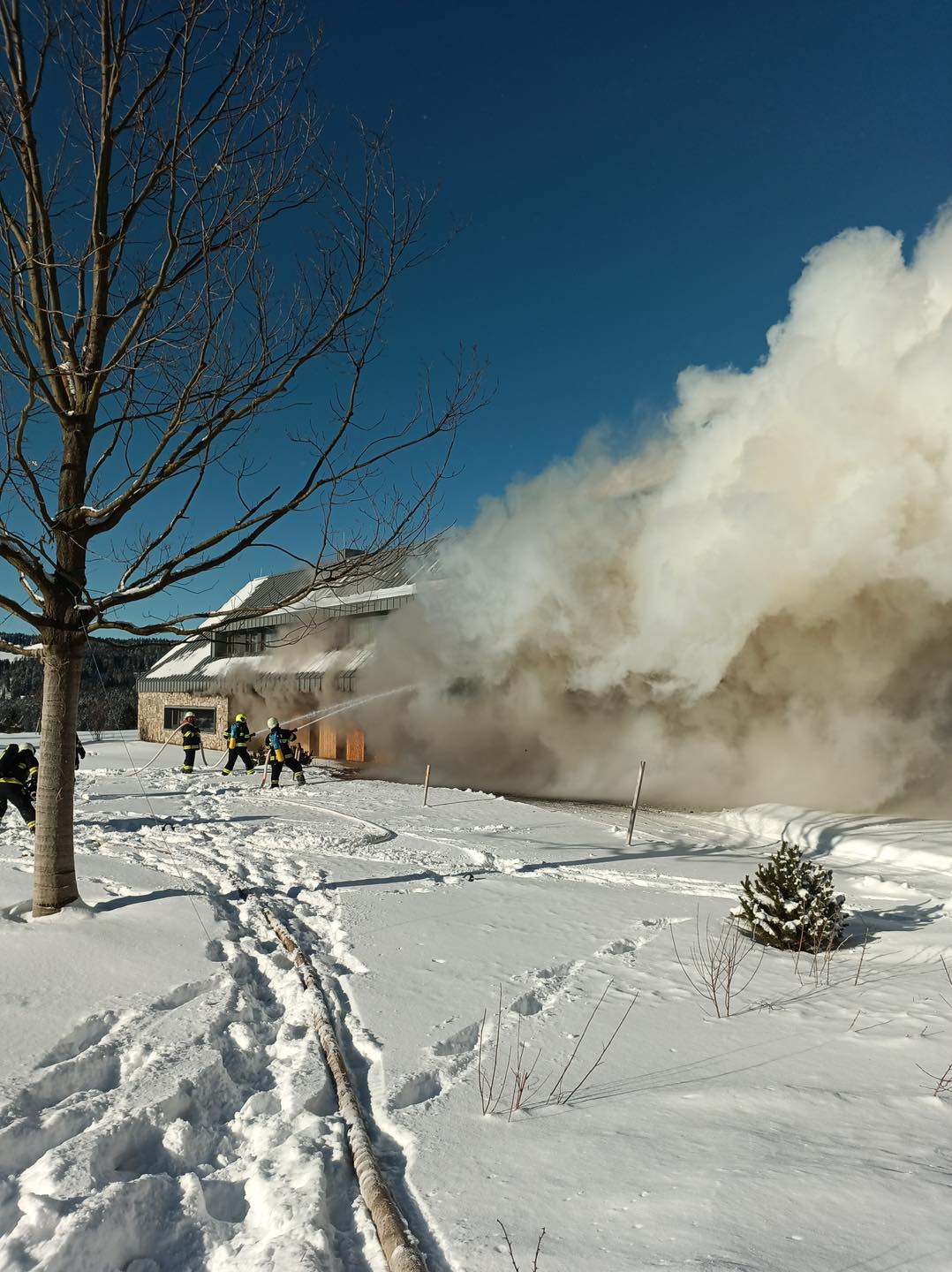 Celkem devět cisteren zasahovalo na místě. Hasiči provedli rychlou lokalizaci požáru a ochlazování okolních prostor, aby zabránili dalším škodám. Zajištěno bylo také zázemí v týlovém kontejneru. Hasební práce probíhaly i po 19. hodině, kdy teplota klesla na -16 stupňů Celsia.