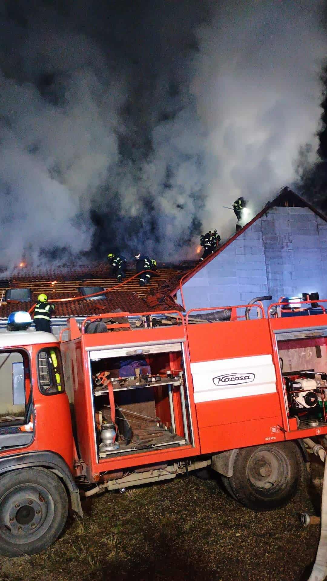 Plameny zasáhly střechu objektu a rychle se rozšířily do konstrukce. Hasiči čelili složitému zásahu, protože oheň postupoval skrytě mezi jednotlivými částmi stavby.