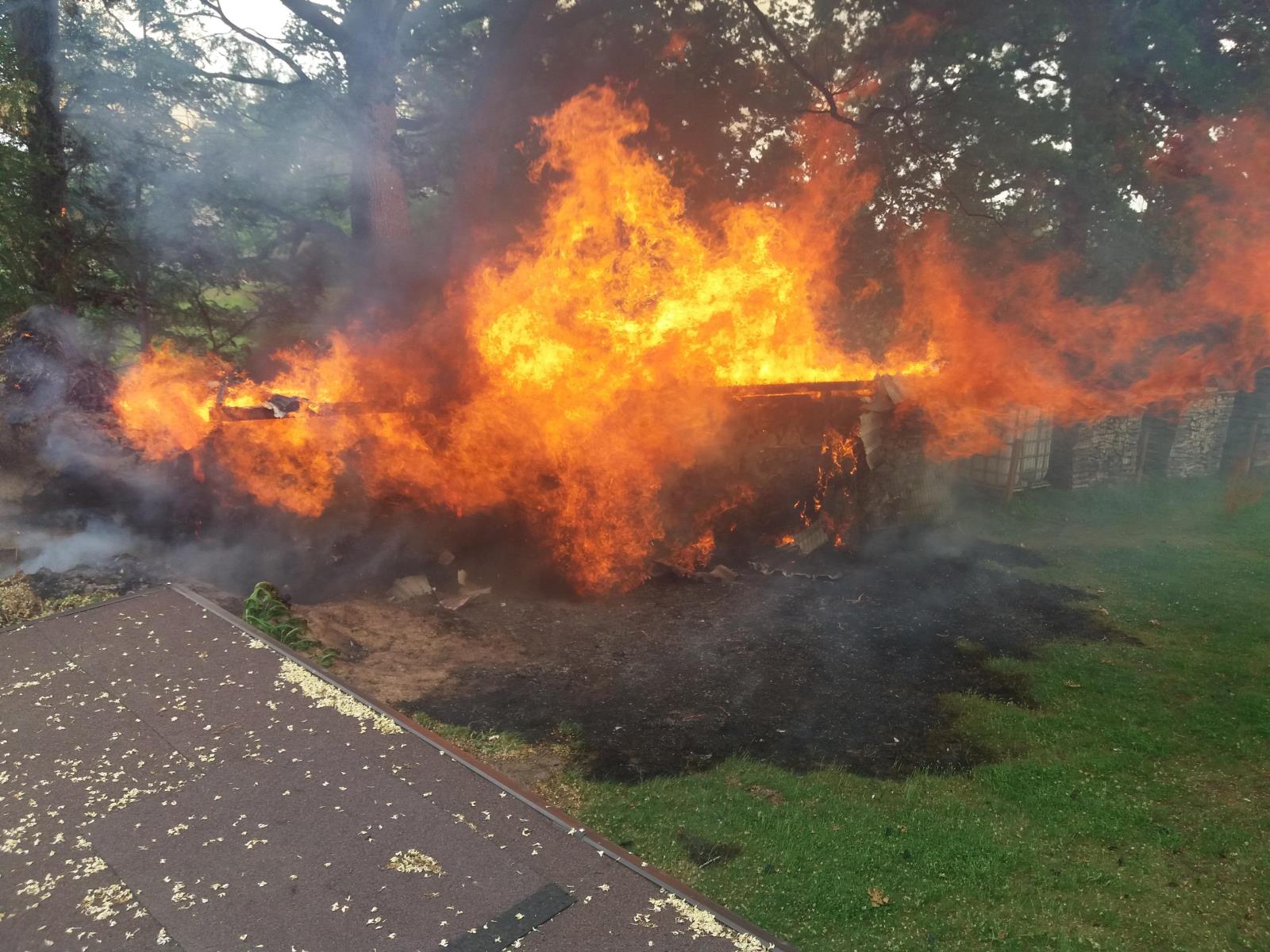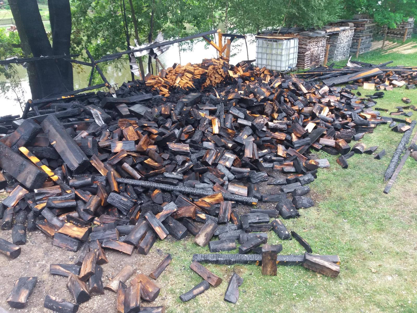 Požár stromu se rozšířil i na uskladněné dřevo, škoda sto tisíc