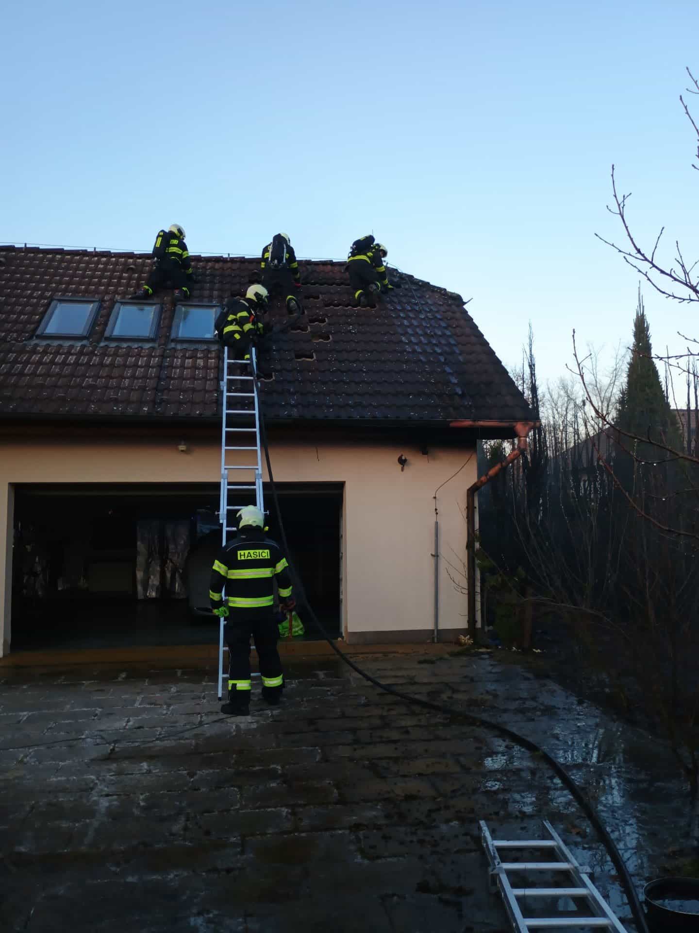 Požár u rodinného domu poškodil střechu garáže