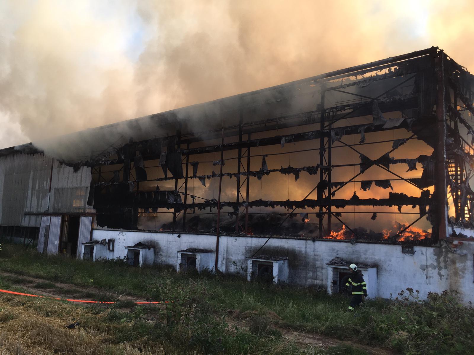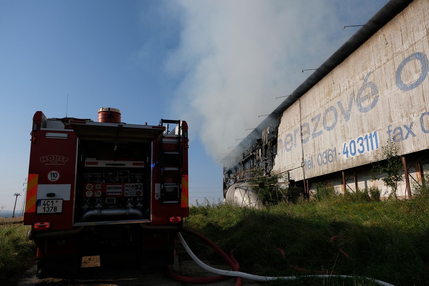 Velkoobjemový sklad sena a pícnin v Měšicích zachvátil požár 12. srpna v ranních hodinách.
