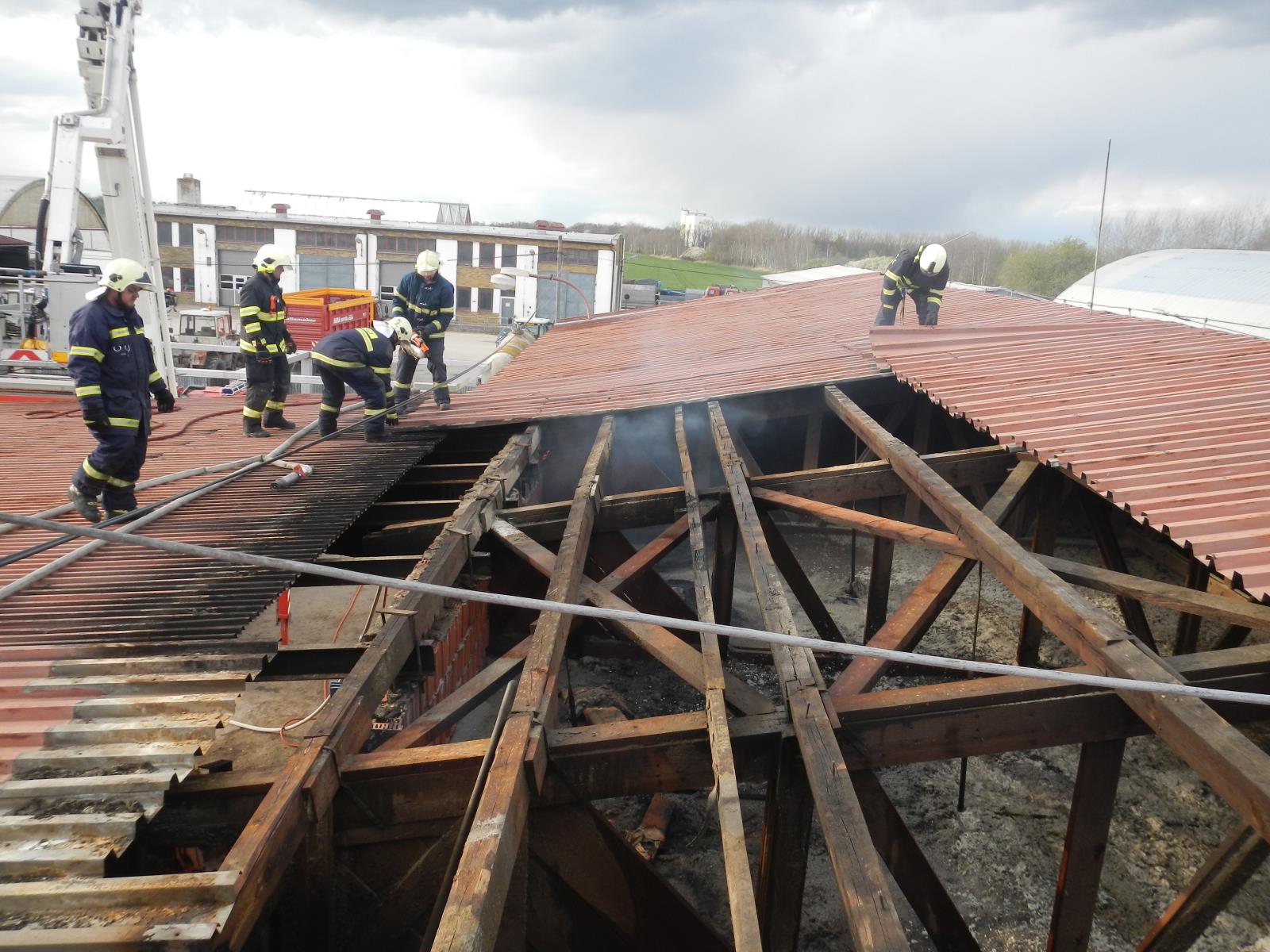 Průzkum potvrdil a upřesnil původní oznámení, a to že hoří vysokozdvižný vozík uprostřed skladu biomasy určené k topení. Na sklad navazovala také kotelna a opravárenské dílny. Požár se od vozíku dostal do střechy skladu a rychle se šířil do mezistropní konstrukce právě nad kotelnu a dílny. Díky rychlému zásahu hasičů se podařilo požár dostat do deseti minut pod kontrolu. Následovalo rozebírání střešní konstrukce, požár byl zcela uhašen krátce po půl páté.