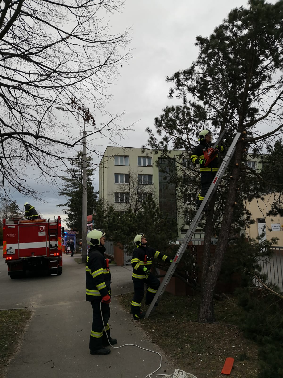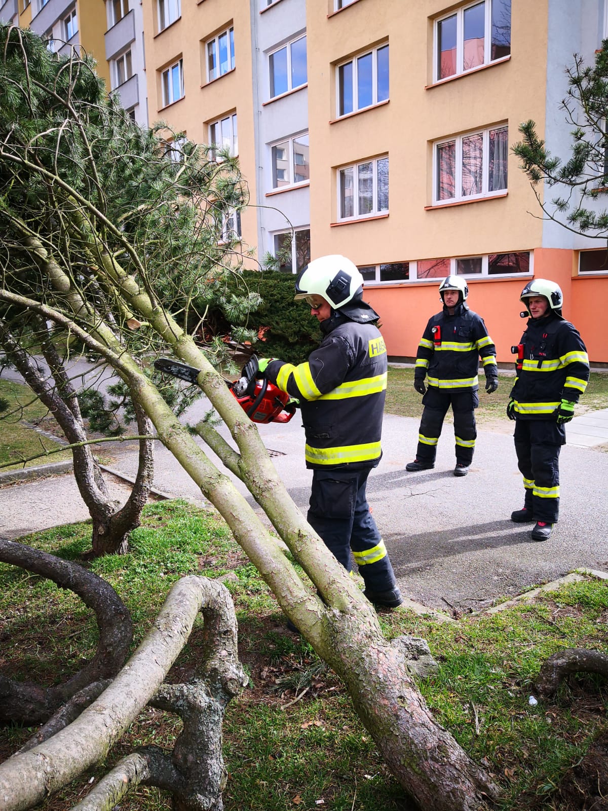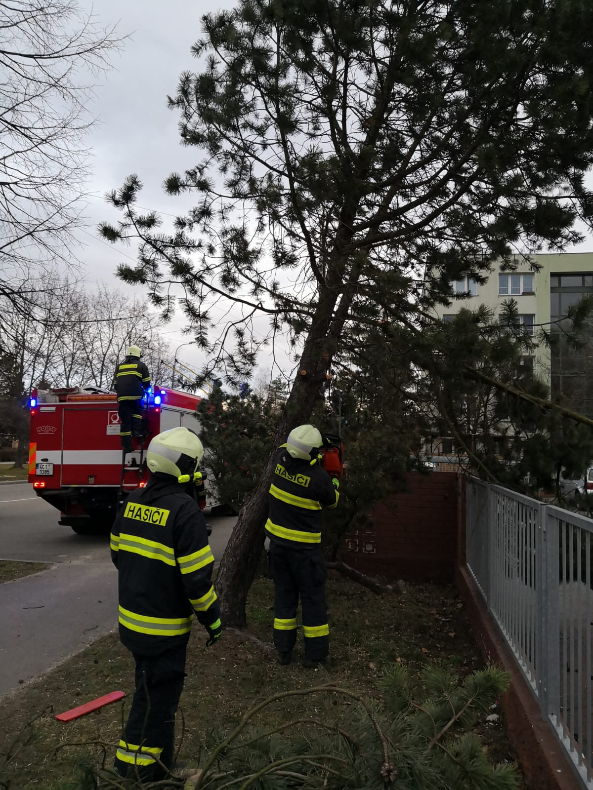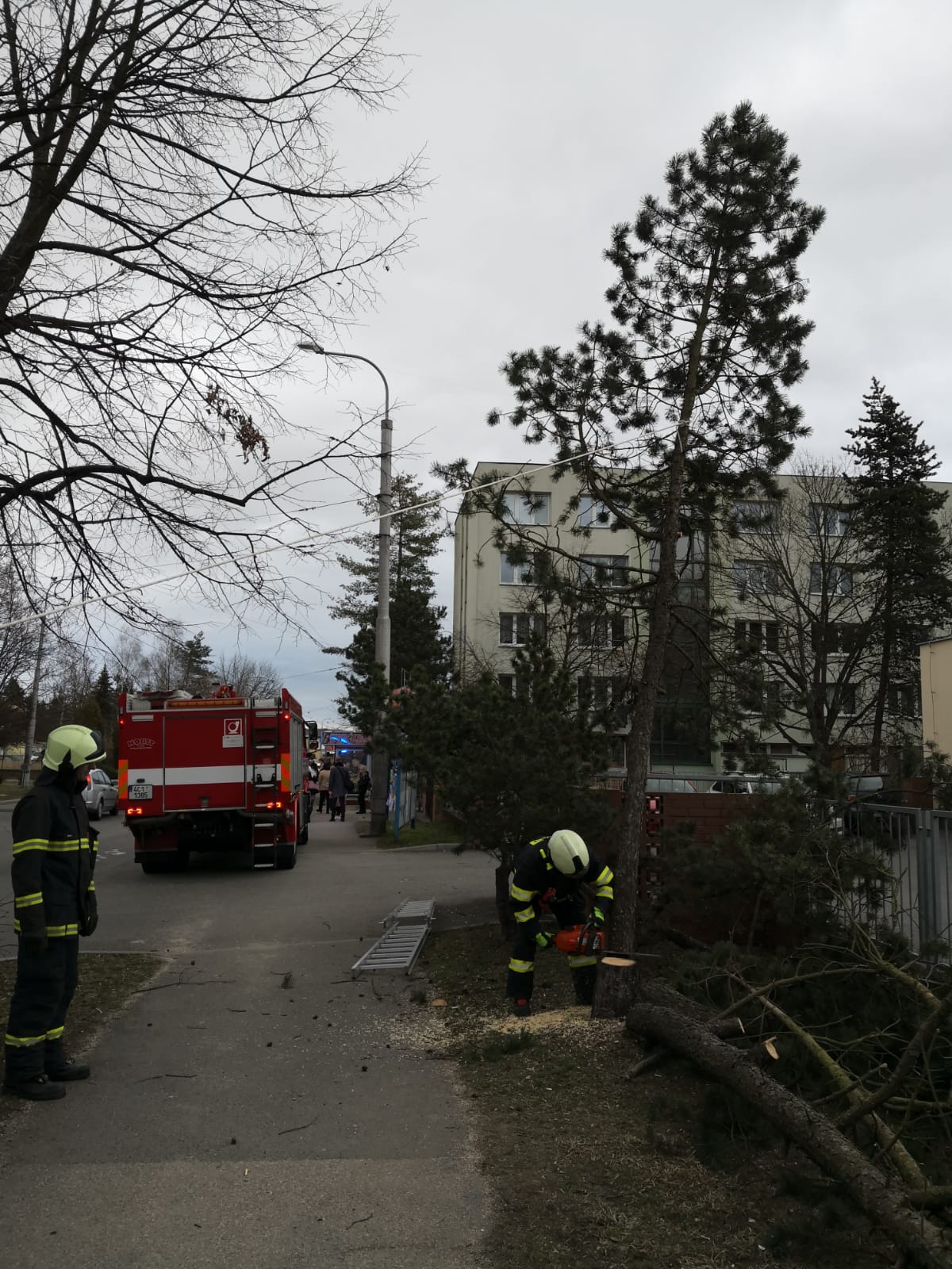 Ještě v průběhu dneška , 13. března 2018,  českobudějovická profesionální jednotka zasahovala přímo v Českých Budějovicích na třech místech, kde odřezávala spadlé, nalomené či nebezpečně nakloněné stromy. Hasiči odklízeli stromy v Krčínově ulici, u DDM v ulici U Zimního stadionu a v areálu mateřské školky v ulici J. Opletala.