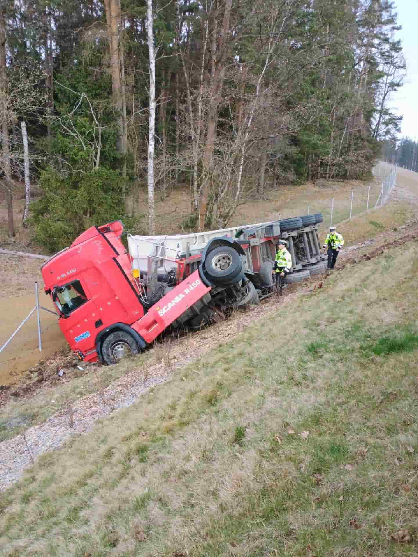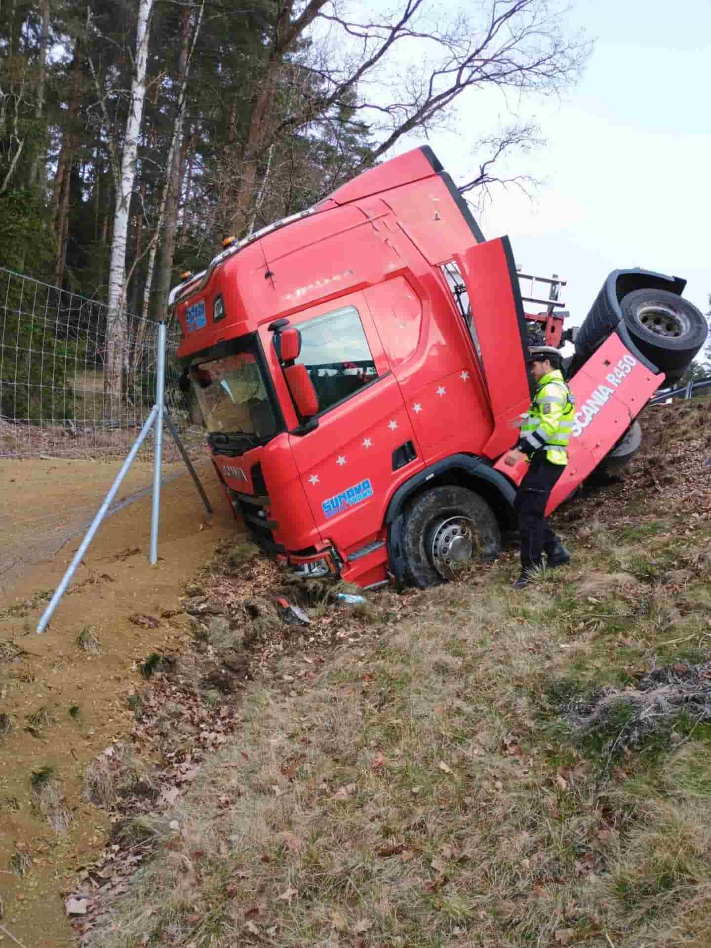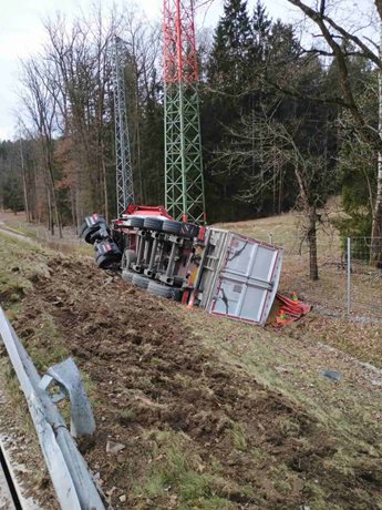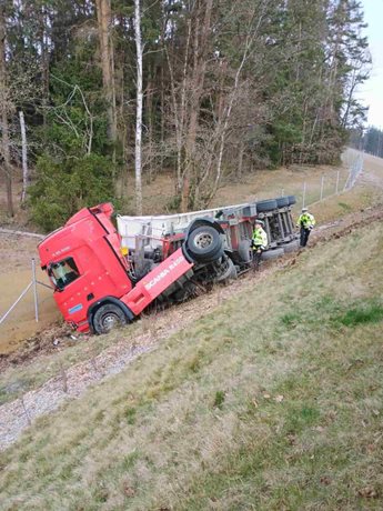 Kamión převážející řepkovou směs se převrátil mimo dálnici, hlavní jízdní pruhy nebyly blokovány. Profesionální jednotky z Českých Budějovic a Suchého Vrbného spolu s dobrovolnými hasiči z Velešína zabezpečovaly místo zásahu. Hasiči kontrolovali únik provozních látek z nádrží, prováděli protipožární opatření a připravovali vyproštění kamiónu.