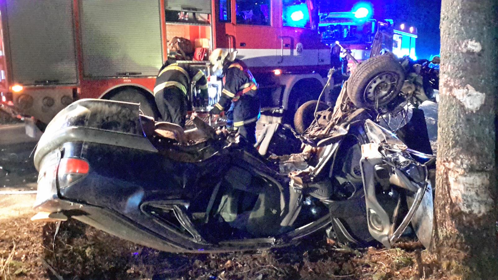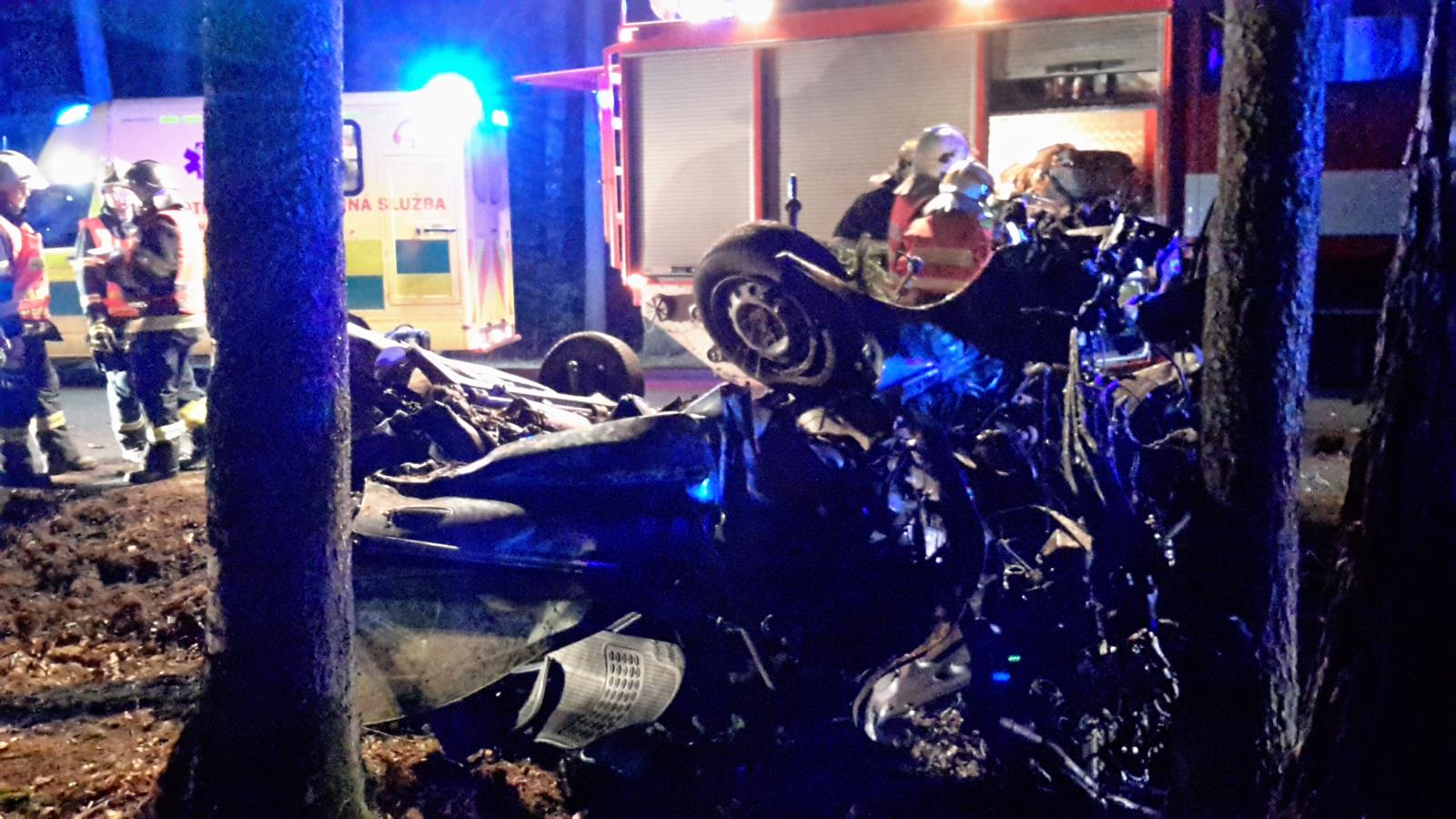 Záchranáři přijeli k nehodě osobního automobilu značky Renault, který byl po nárazu do stromů u silnice totálně zdemolovaný. Uvnitř vozu zůstala zaklíněná zraněná řidička. Obě jednotky se okamžitě pustily do vyprošťování.