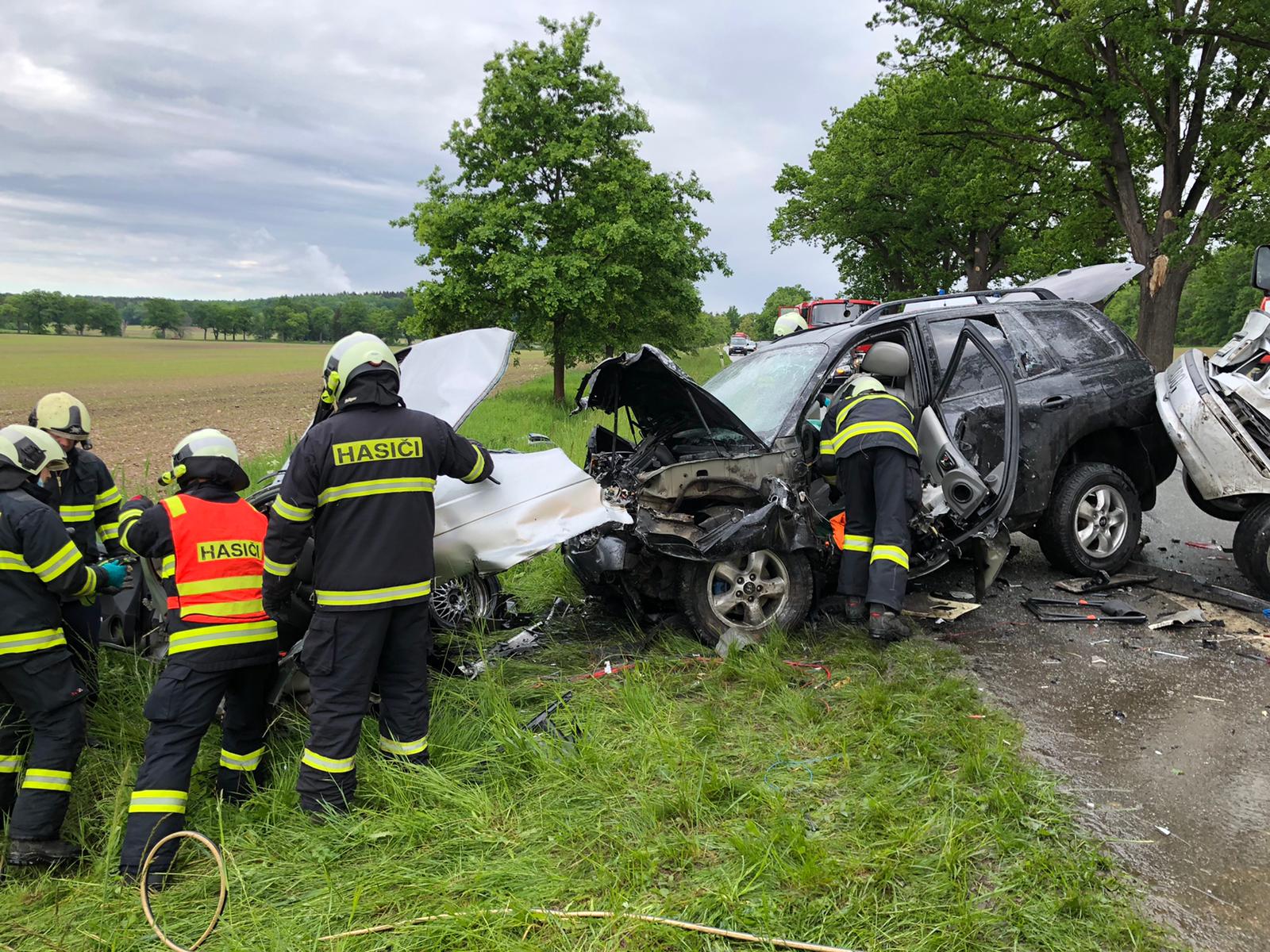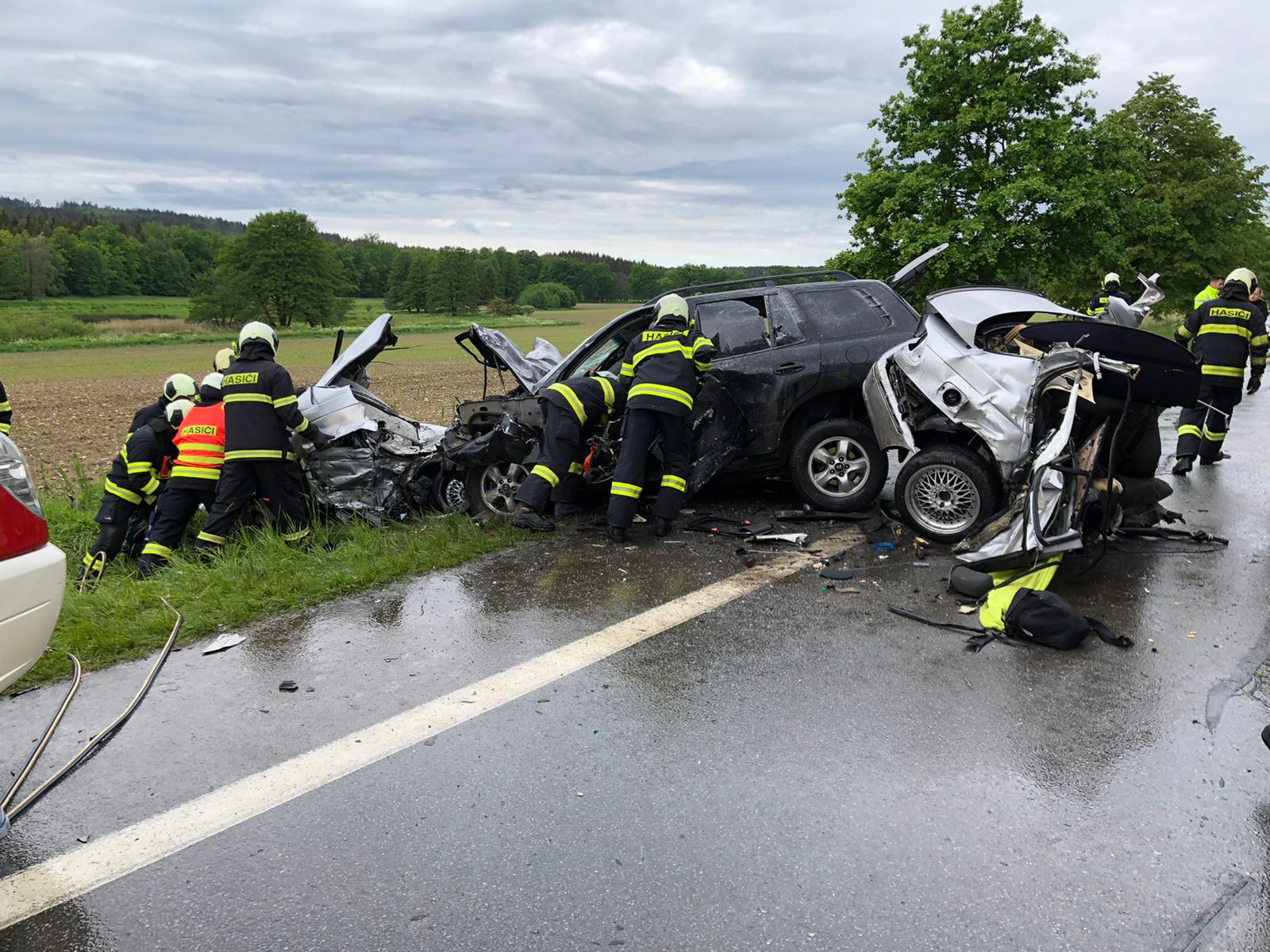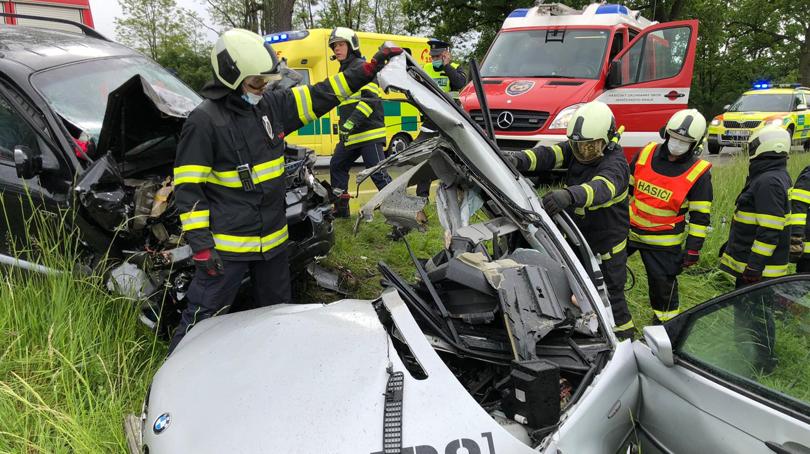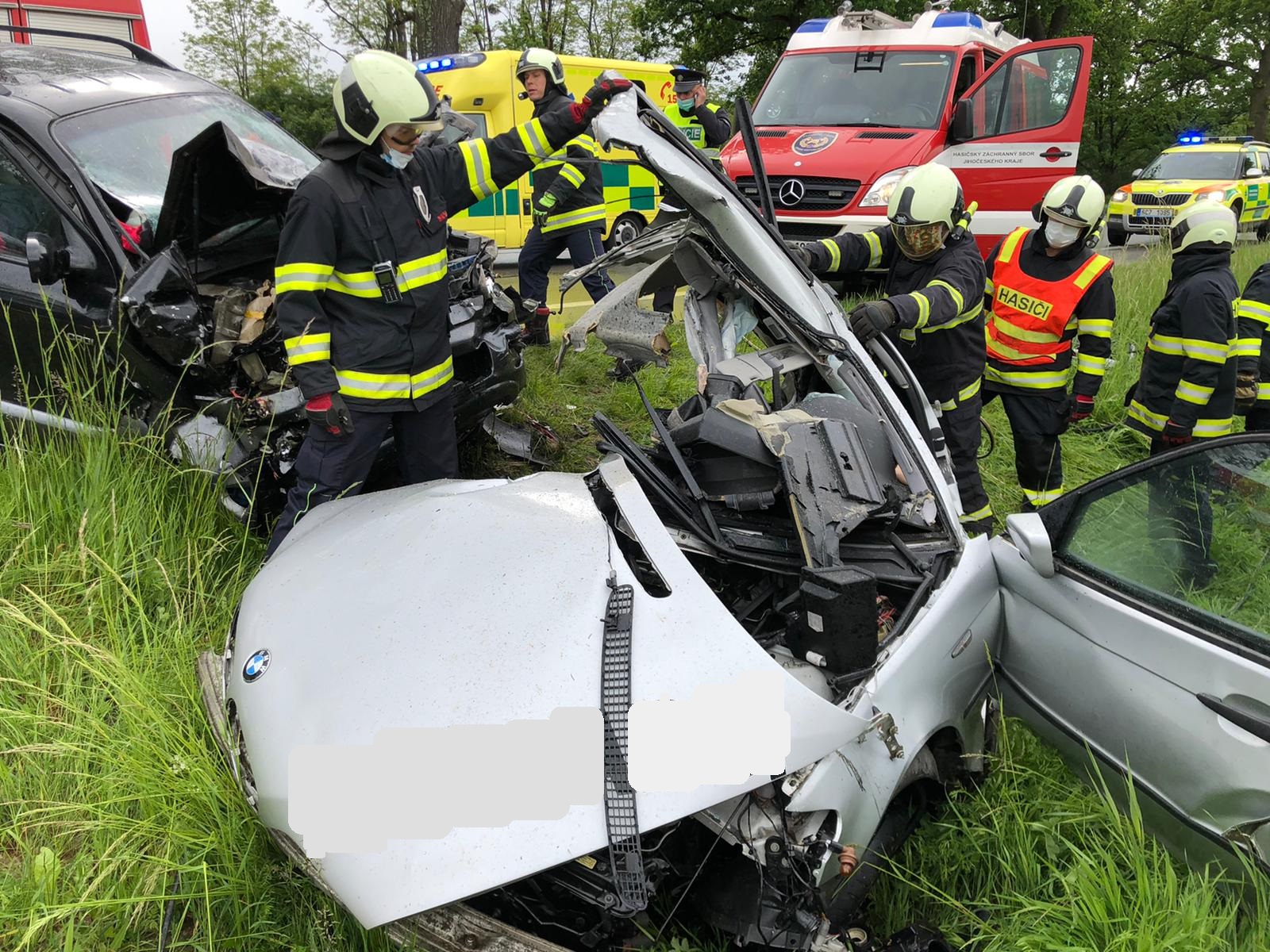 K nehodě vyjely v 10:17 hodin všechny složky integrovaného záchranného systému. Z jednotek požární ochrany to byli profesionální hasiči ze stanice České Budějovice a Týn nad Vltavou. Jedná se o střet dvou osobních aut továrních značek BMW a Hyundai Santa Fé s tím, že náraz vůz BMW přepůlil. Uvnitř BMW pak zůstal zaklíněný řidič. Utrpěl však zranění neslučitelná se životem, lékař ZZS i přes veškerou snahu záchranářů u něj konstatoval smrt. Další osobu pak zasahující hasiči vyprošťovali. U nehody přistál vrtulník LZS, do kterého byl vyproštěný řidič transportována. Po zadokumentování nehody Policií ČR hasiči vyprostili i tělo zemřelé osoby. Jednotka dále provedla nezbytné zajištění místa nehody, protipožární opatření a kontrolu úniku provozních kapalin. Policisté silnici v místě nehody uzavřeli.
