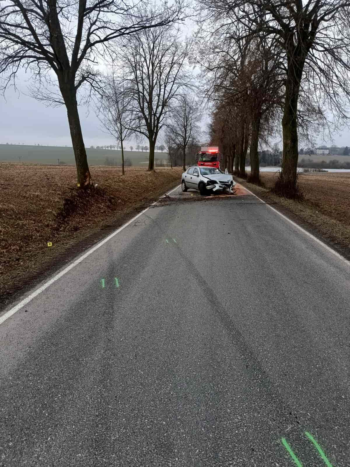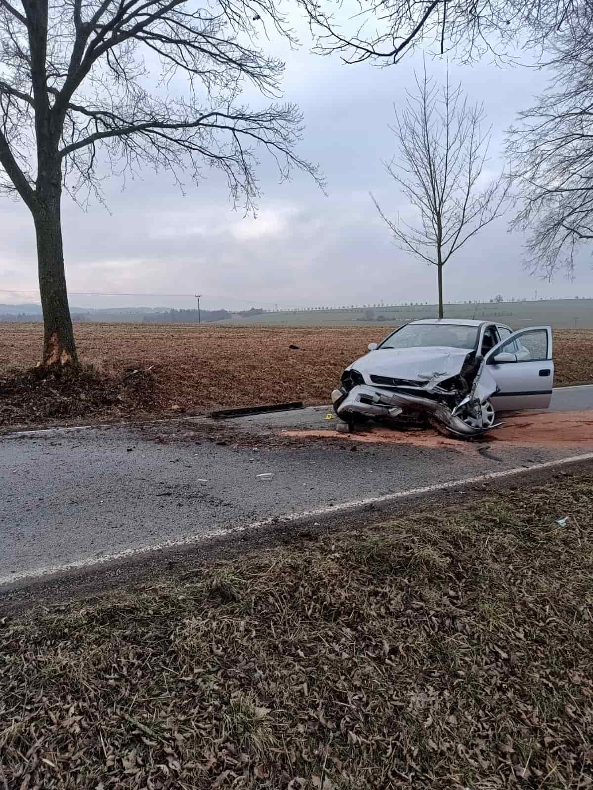 Druhá nehoda se stala po půl osmé v katastru obce Stará Vožice. Řidička osobního vozidla značky Opel Astra, narozená v roce 1993, nepřizpůsobila rychlost jízdy podmínkám a vlastnostem vozidla. Při průjezdu levotočivou zatáčkou do její jízdní dráhy skočila srna. Žena se jí snažila vyhnout, ale vyjela do silničního příkopu a narazila do stromu. Utrpěla lehké zranění, o které se postaral lékař Zdravotnické záchranné služby Jihočeského kraje. Vozidlo bylo poškozené a stalo se nepojízdným, proto byl zajištěn odtah.