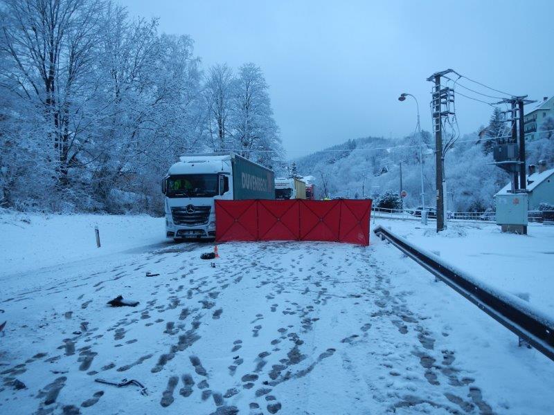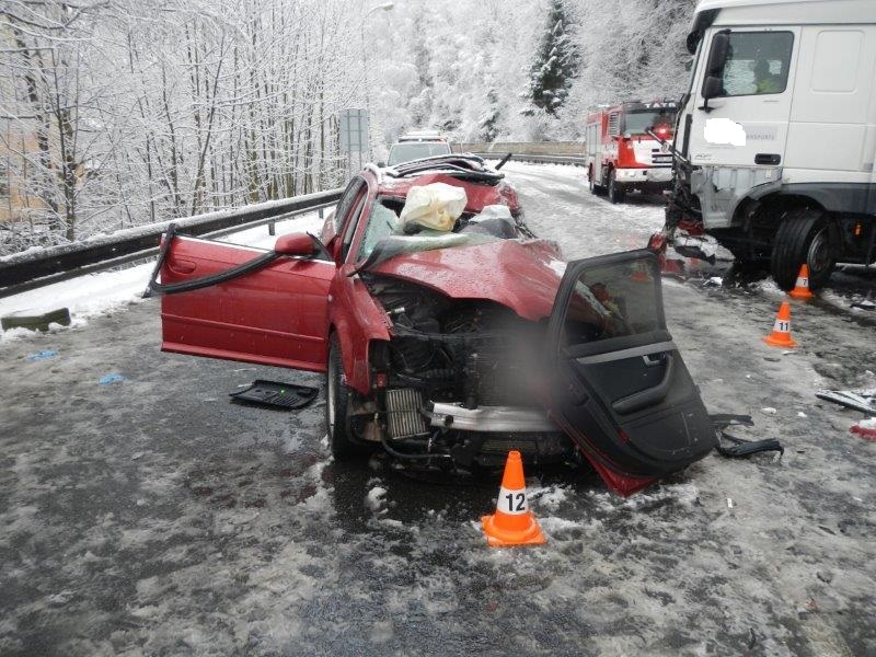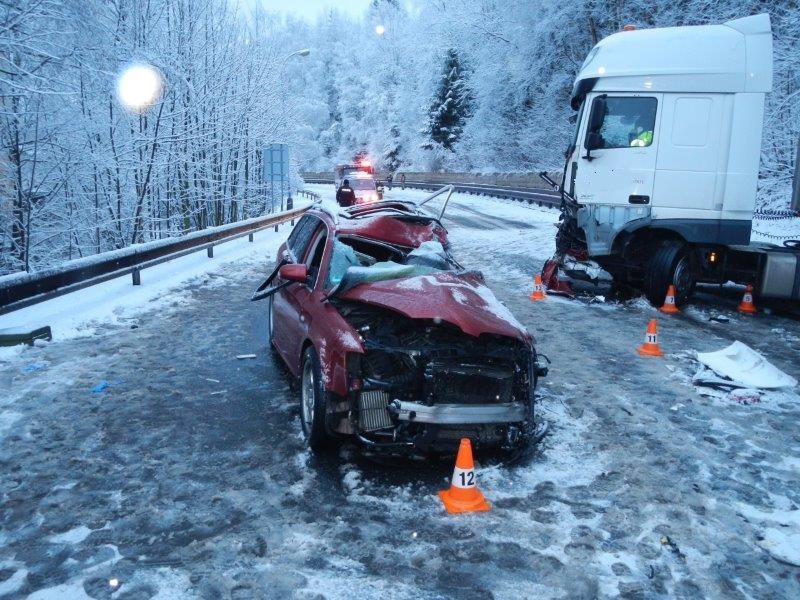 Vážná dopravní nehoda se stala krátce před šestou hodinou ranní ve Vimperku. K nehodě, ohlášené jako střet osobního auta a kamiónu, vyjela v 5:58 hodin na silnici I. třídy č. 4 do místa zvaného Pod Sklářským vrchem profesionální jednotka ze stanice Vimperk. Průzkum na místě nehody ukázal, že v osobním voze značky Audi, zůstal zaklíněný zraněný řidič. Velitel zásahu ihned rozhodnul o zahájení vyprošťování. K tomu nakonec nedošlo. Lékař ZZS u řidiče konstatoval smrt. Hasiči zajistili místo nehody i oba havarované dopravní prostředky. Nehodu si následně převzala Policie ČR k šetření. Hlavní tah na Strážný byl kvůli nehodě hodiny uzavřen, okolo 10. hodiny byl provoz obnoven alespoň kyvadlově.