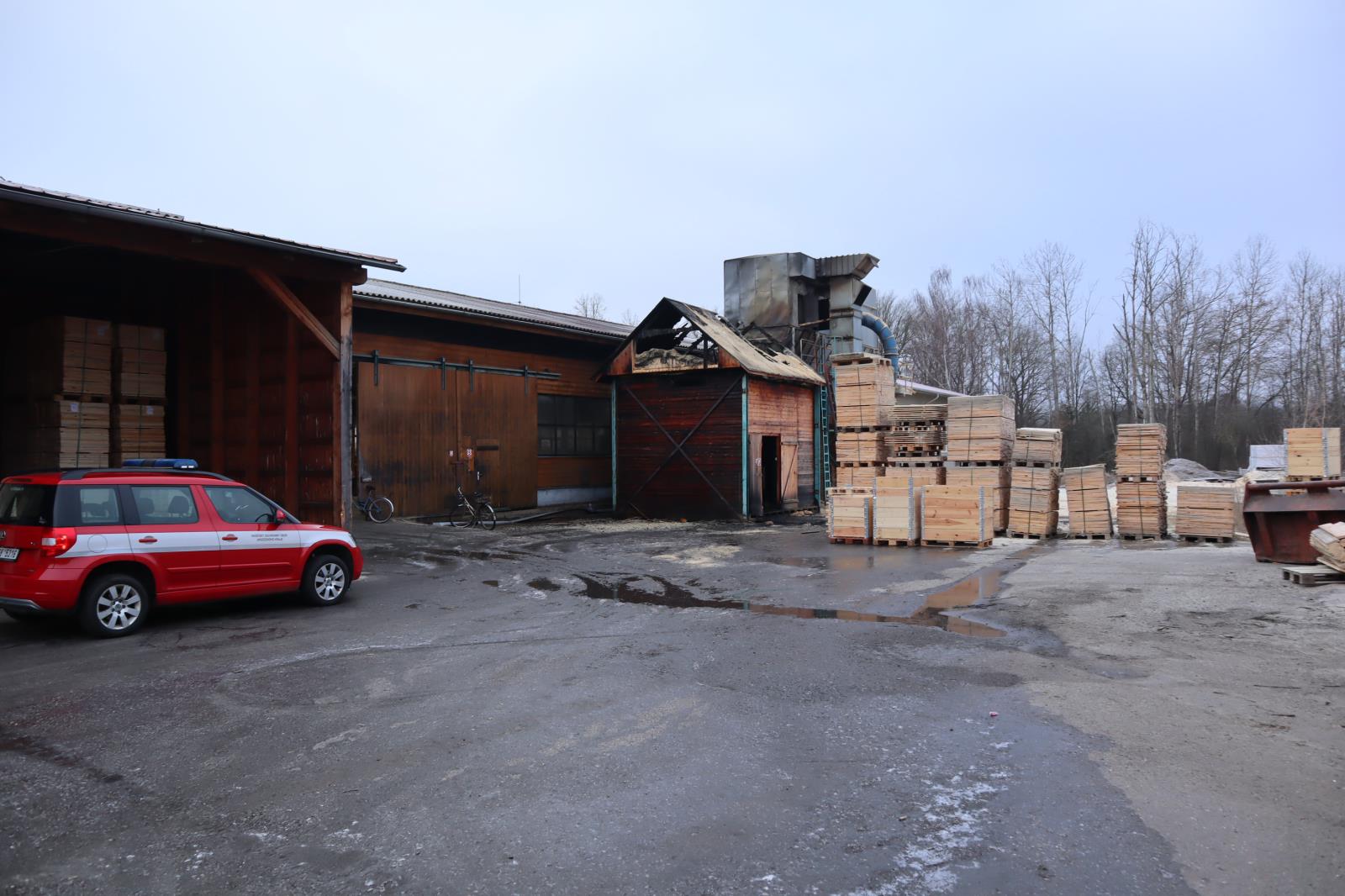 Hasiči likvidovali požár v budově briketárny, nad kterou v půdním prostoru hořely uskladněné piliny a zásobník. Zasahujícím jednotkám se podařilo požár dostat rychle pod kontrolu. Již v 5:18 hodin velitel zásahu hlásil lokalizaci požáru s tím, že se podařilo zabránit rozšíření požáru do dalších budov truhlárny.