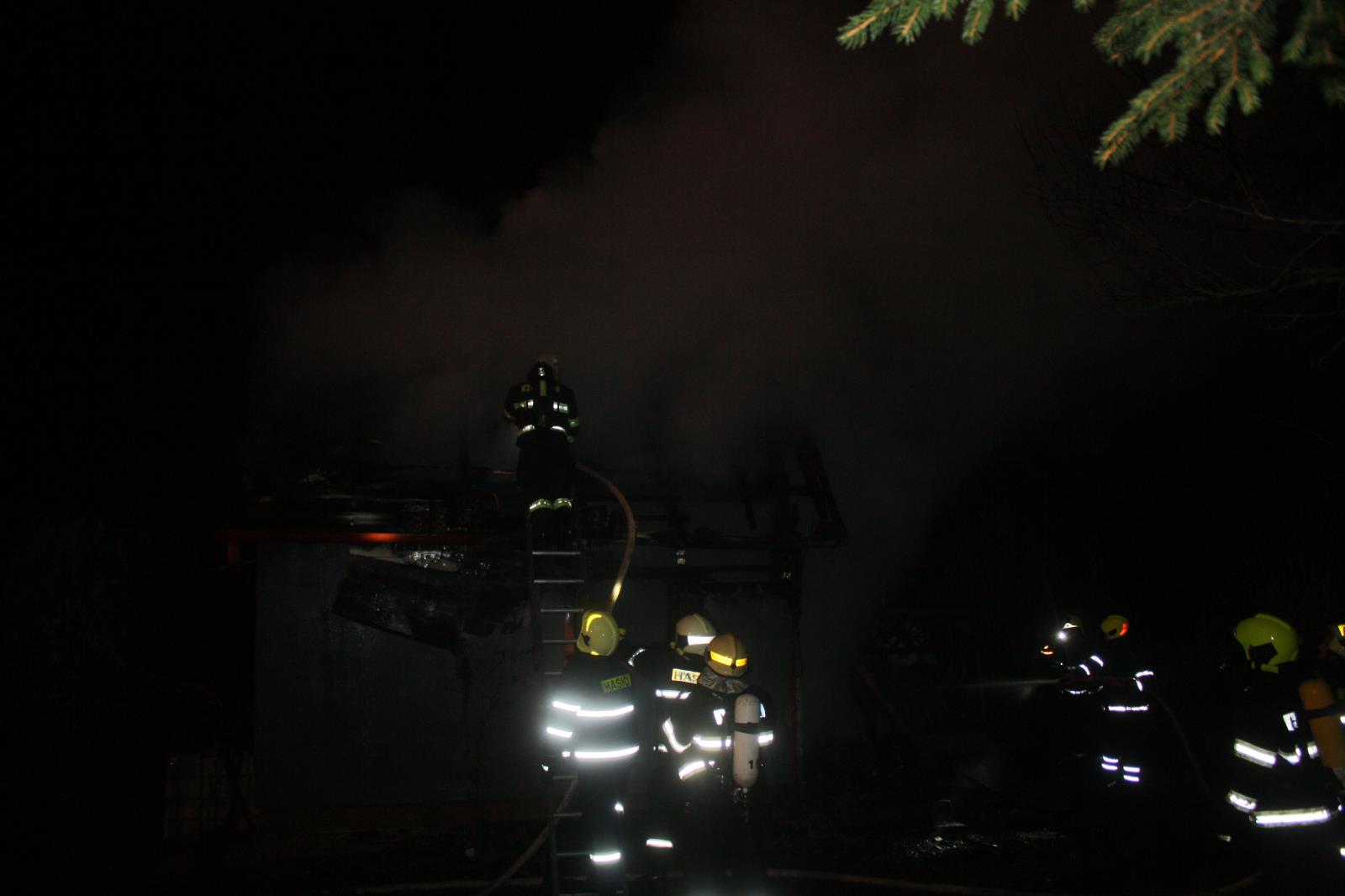Profesionální jednotka ze stanice Týn nad Vltavou vyjela krátce před půl čtvrtou ranní do Hluboké nad Vltavou, části obce Kostelec, kde byl ohlášen požár chaty. Zároveň byl vyhlášen poplach pro jednotky SDH obcí Hluboká nad Vltavou, Kostelec a Dolní Bukovsko. Když hasiči k požáru přijeli, byla chatka o půdorysu 5 x 5 metrů v plamenech. Hasiči ihned zahájili průzkum a hasební práce. Zjistili, že uvnitř chatky, částečně zděné, částečně dřevěné, nikdo není. Vynesli ven dvě desetikilové propanbutanové láhve a dva kanystry. Po 40 minutách velitel zásahu nahlásil lokalizaci – požár je pod kontrolou zasahujících hasičů. Zcela uhašena byla chata krátce po půl šesté ranní. Po úplném dohašení na požářiště nastoupil vyšetřovatel HZS, který stanovil výši vzniklé škody na 800 000,-, hodnota uchráněného majetku činí 200 000,-. Příčina vzniku požáru je v šetření.
