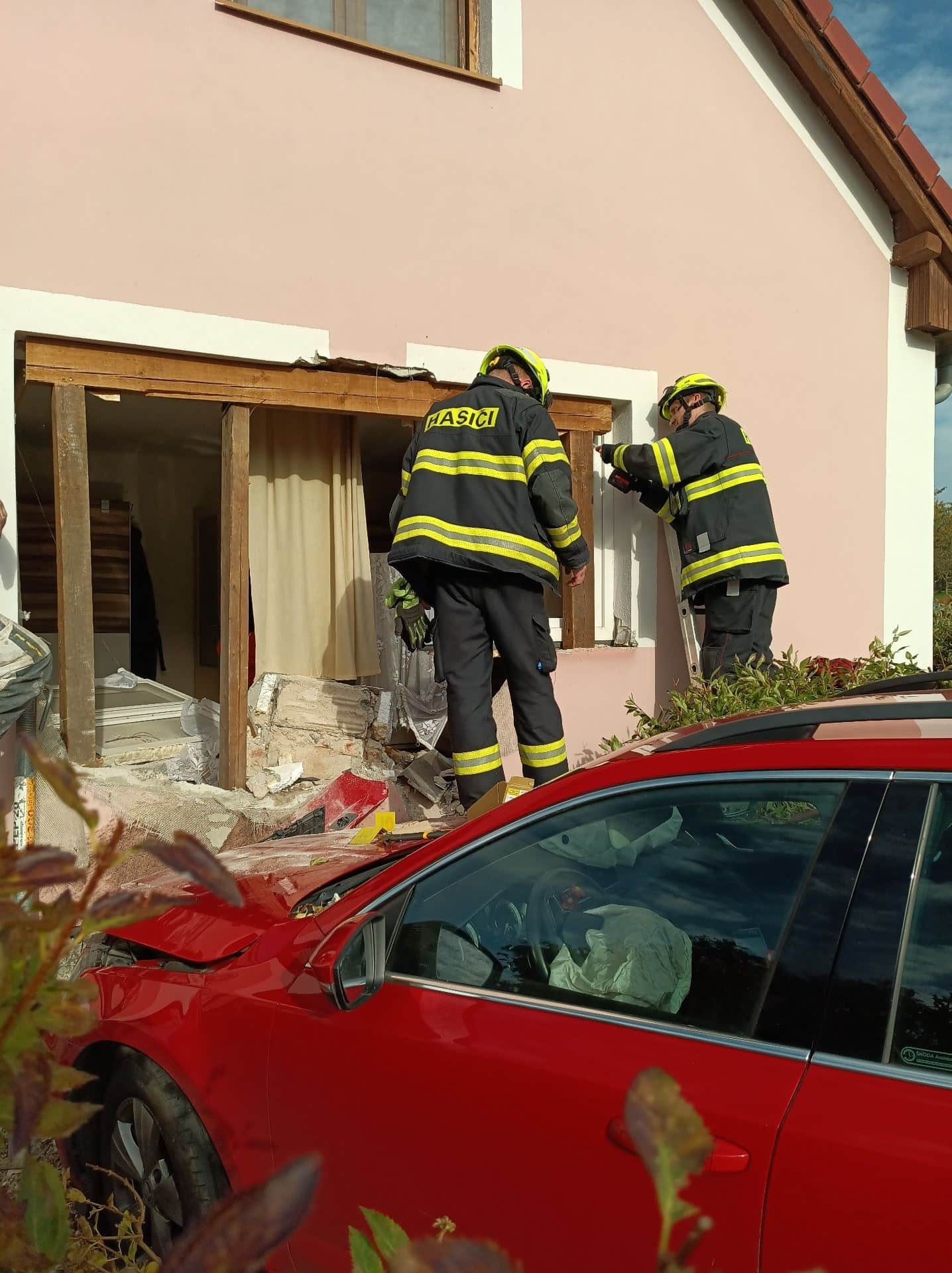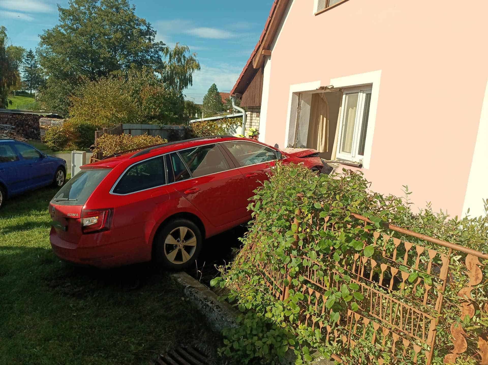 Řidička v Hlavatci vjela autem do domu, hasiči zajistili statiku