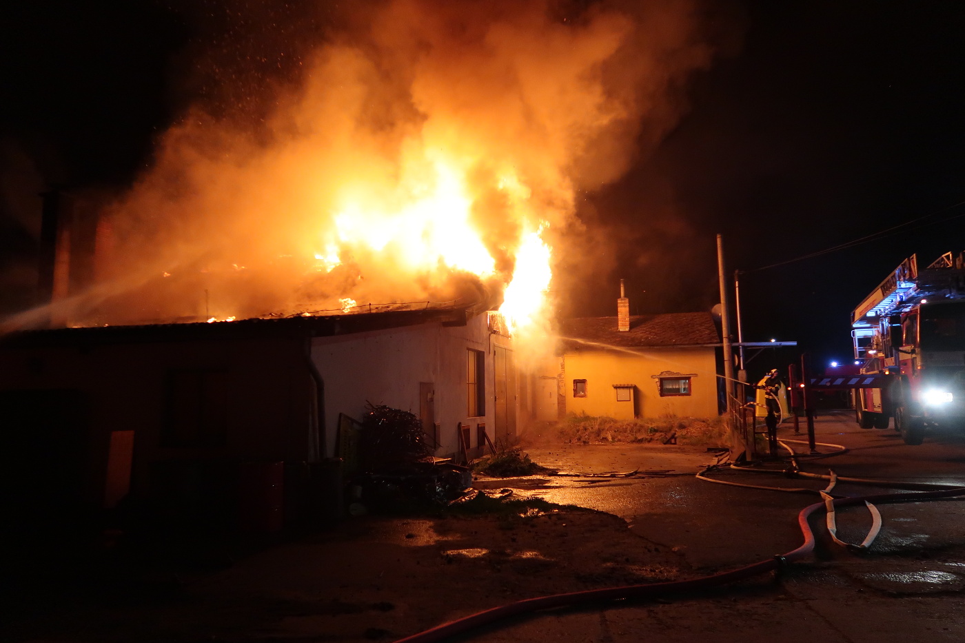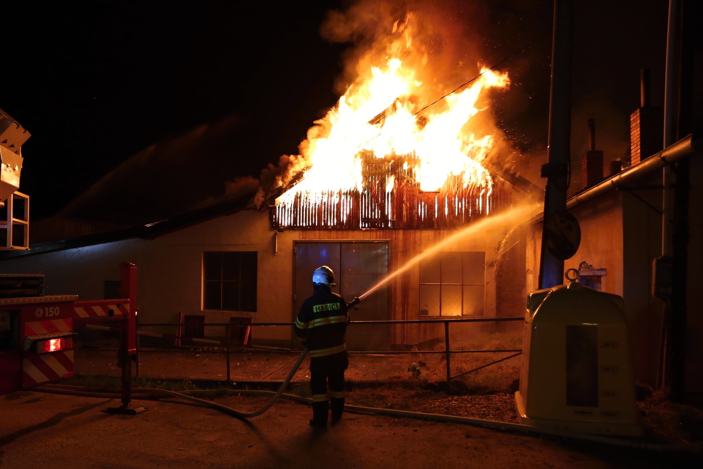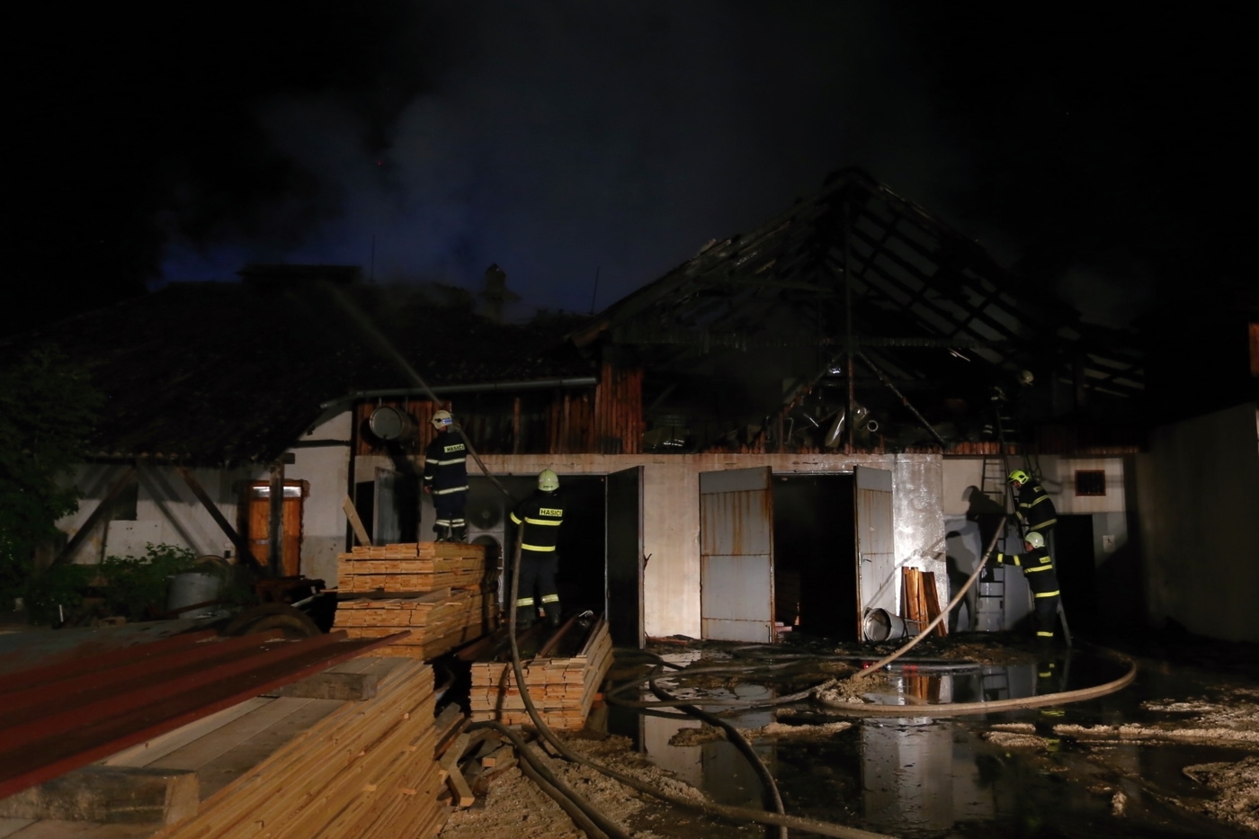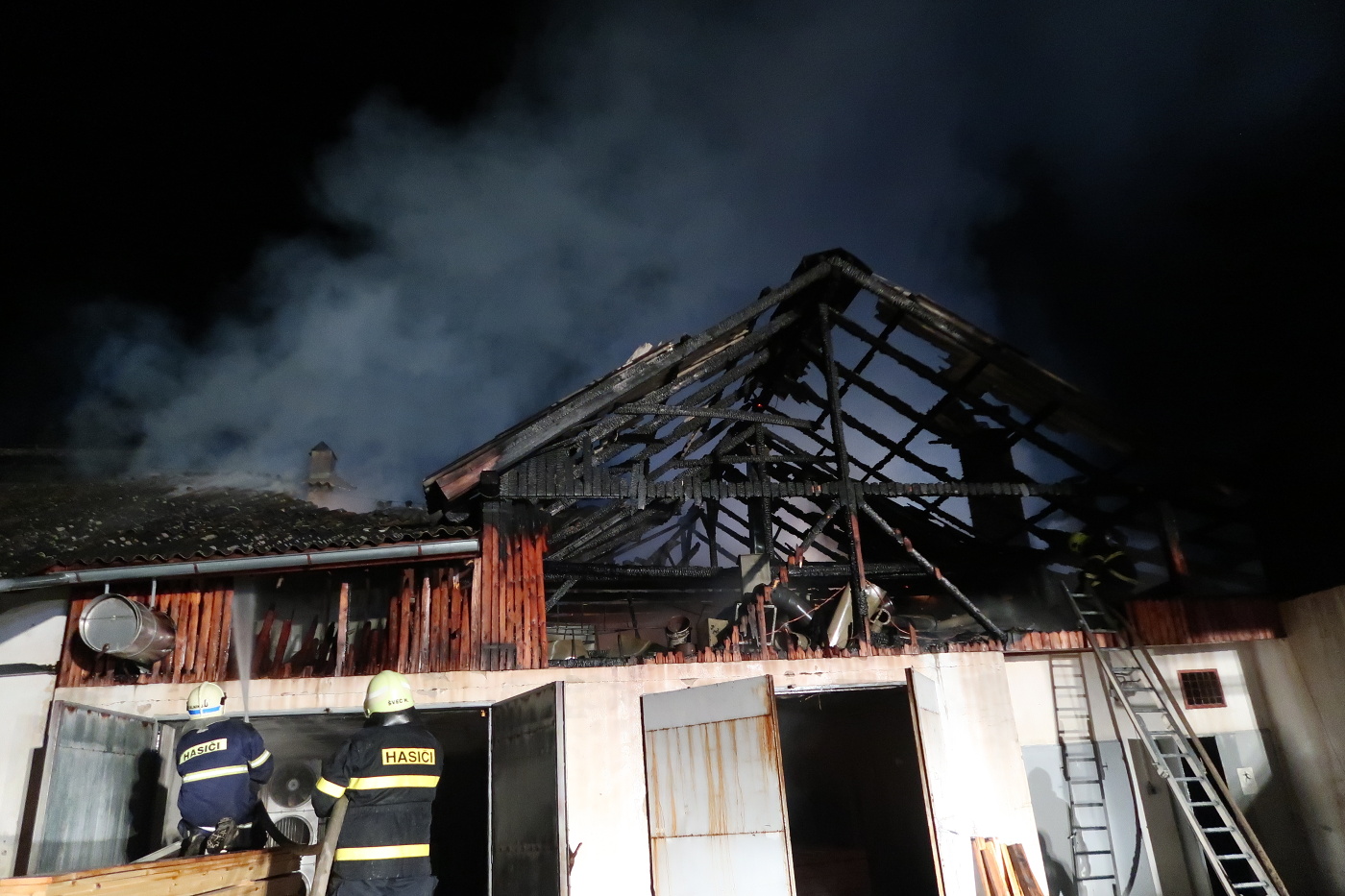Rozsáhlý požár, který střechu dílny a meziskladu zničil prakticky kompletně, dostaly pod kontrolu přibližně do půlhodinky. Velitel zásahu v 22:21 hodin nahlásil lokalizaci požáru.