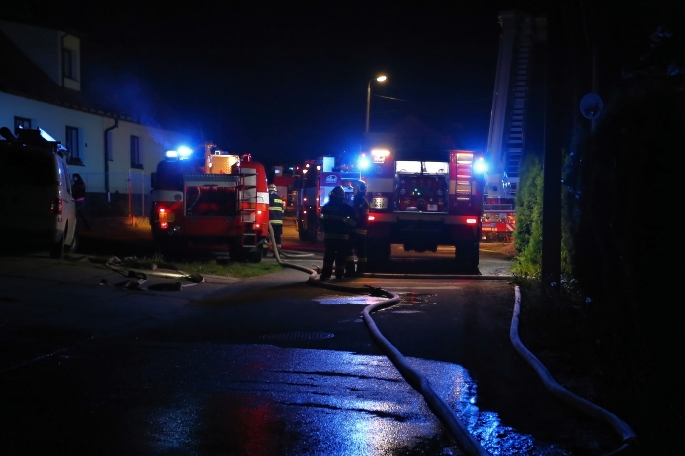 Povolána byla také cisterna profesionálních hasičů ze stanice České Budějovice. Celkem se na požářiště dostavilo 11 cisteren, dva dopravní automobily a automobilová plošina. Vzhledem k množství vyslané techniky byl druhý stupeň požárního poplachu vyhlášen již v 21:43 hodin.